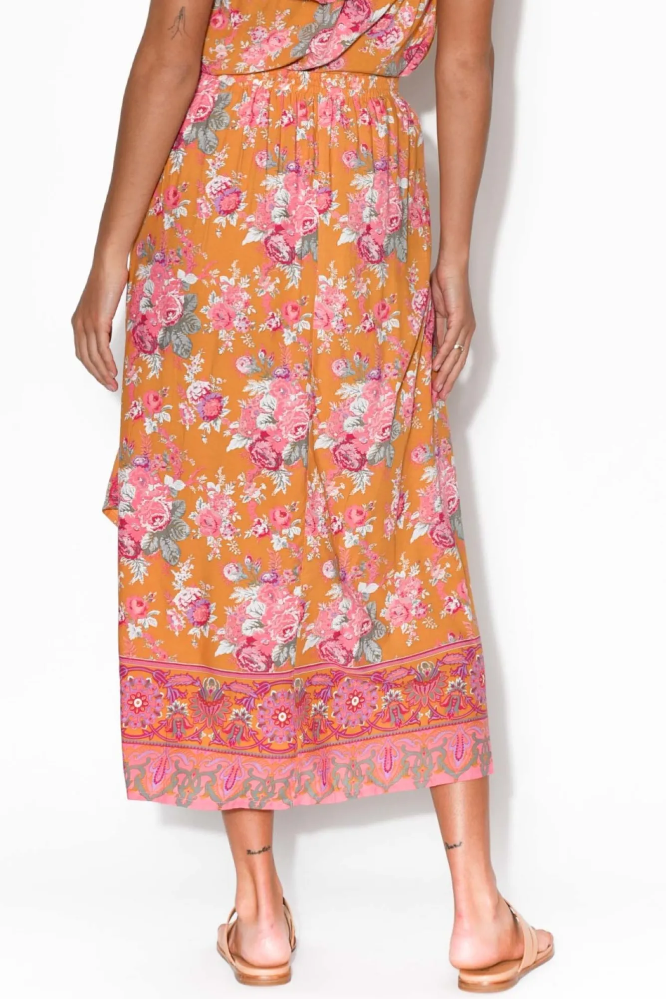 Fit: Runs Small. Refer To Size & Fit Tab Below For Specific Size RecommendationNNfabric: 100% RayonNbeautiful Lightweight, Soft And Breathable, Non-Stretch FabricNdrawstring Waist Can Be Adjusted For Comfort Nfeaturing A Lovely Ornate Metal Tassel Detail On Drawstring Nflattering Relaxed A Line Silhouette NNasymmetrical Hem Falls At A Midi LengthNNcare: Cool Gentle Hand Wash RecommendedNNcolour: Yellow Base With Peachy Toned Floral PrintNNnote: May Be Slight Variation In Print Placement
