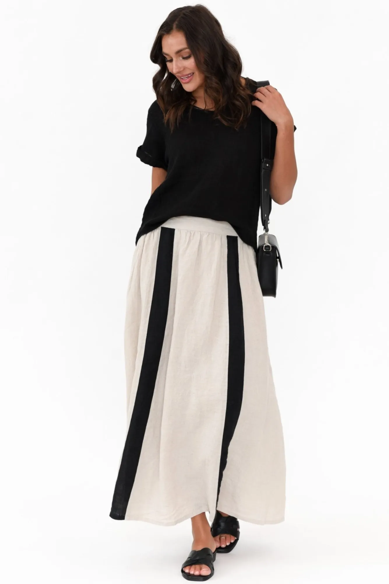 Fit: True To Size. Refer To Size & Fit Tab Below For Specific Size RecommendationNNfabric: Shell: 100% Linen Lining: 100% CottonNlightweight And Breathable Linen With The Classic Textured Woven Hand FeelNNsoft Cotton Lining For Extra Comfort And Coverage Nstretchy Elastic Waistband Flatters The WaistNNcontrast Black Panelling At The Front And Back Add DimensionNbillowy A-Line Silhouette Flows Over The Hips Without ClingingNstraight Hem Length Falls To A Midi Length NNcare: Cool Gentle Machine Wash RecommendedNNcolour: Natural Shade With Black Panelling
