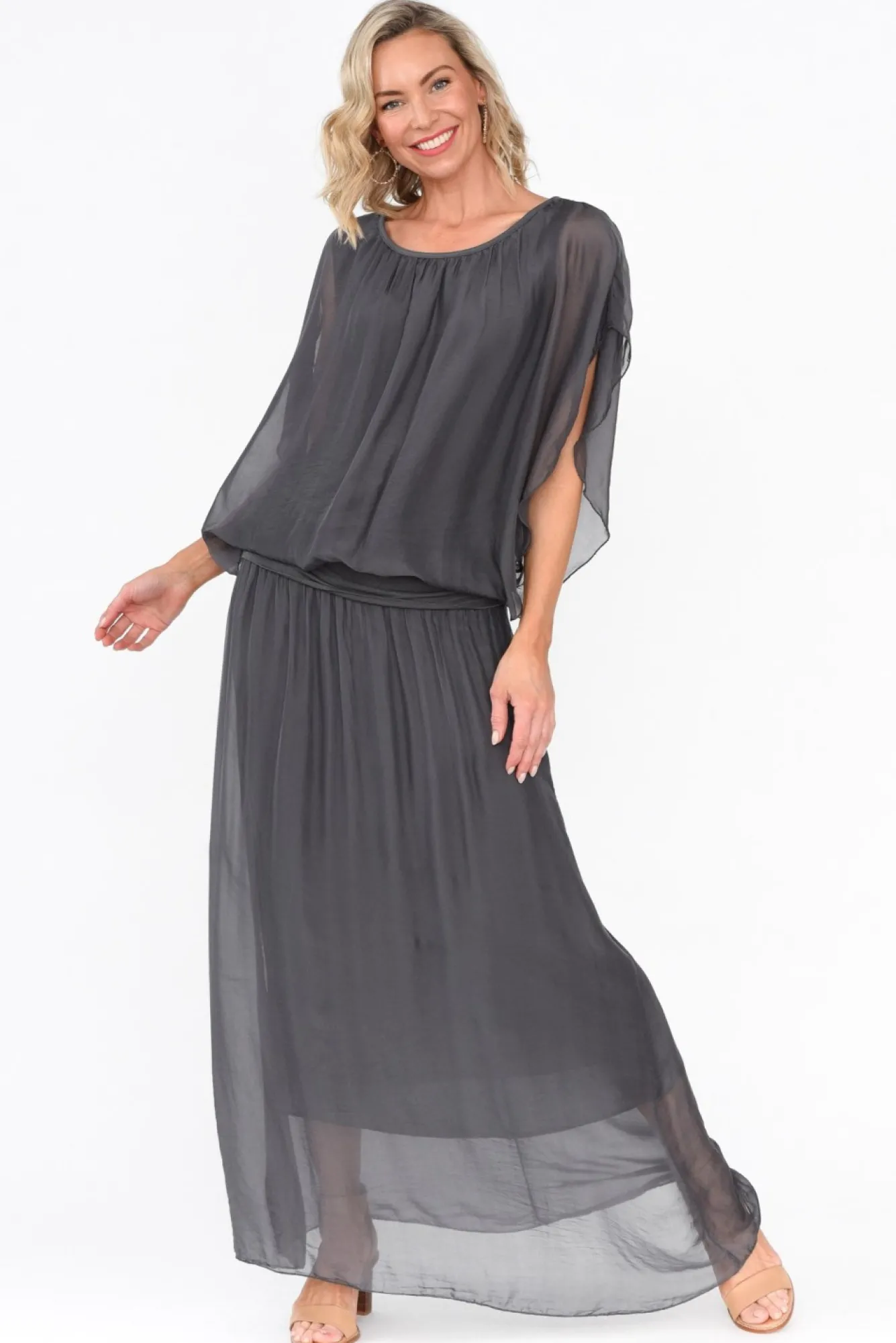 Fit: True To Size. Refer To Size & Fit Tab Below For Specific Size RecommendationNNfabric: Main: 70% Viscose, 30% Silk Lining: 95% Viscose, 5% Elastane Nbreezy, Ultra-Lightweight And Non-Stretch Silk Blend Fabric NNcrafted In Italy Na Soft And Stretchy Fabric Lines The Interior For Comfort And Coverage Nfeaturing A Wide Jersey Waistband With A Stretchy Feel NNtimeless And Floaty Straight Silhouette Enhanced By A Silky Overlay NNhem Falls To A Versatile Midi Length NNNcare: Cool Gentle Hand Wash RecommendedNNcolour: Elegant Charcoal Shade