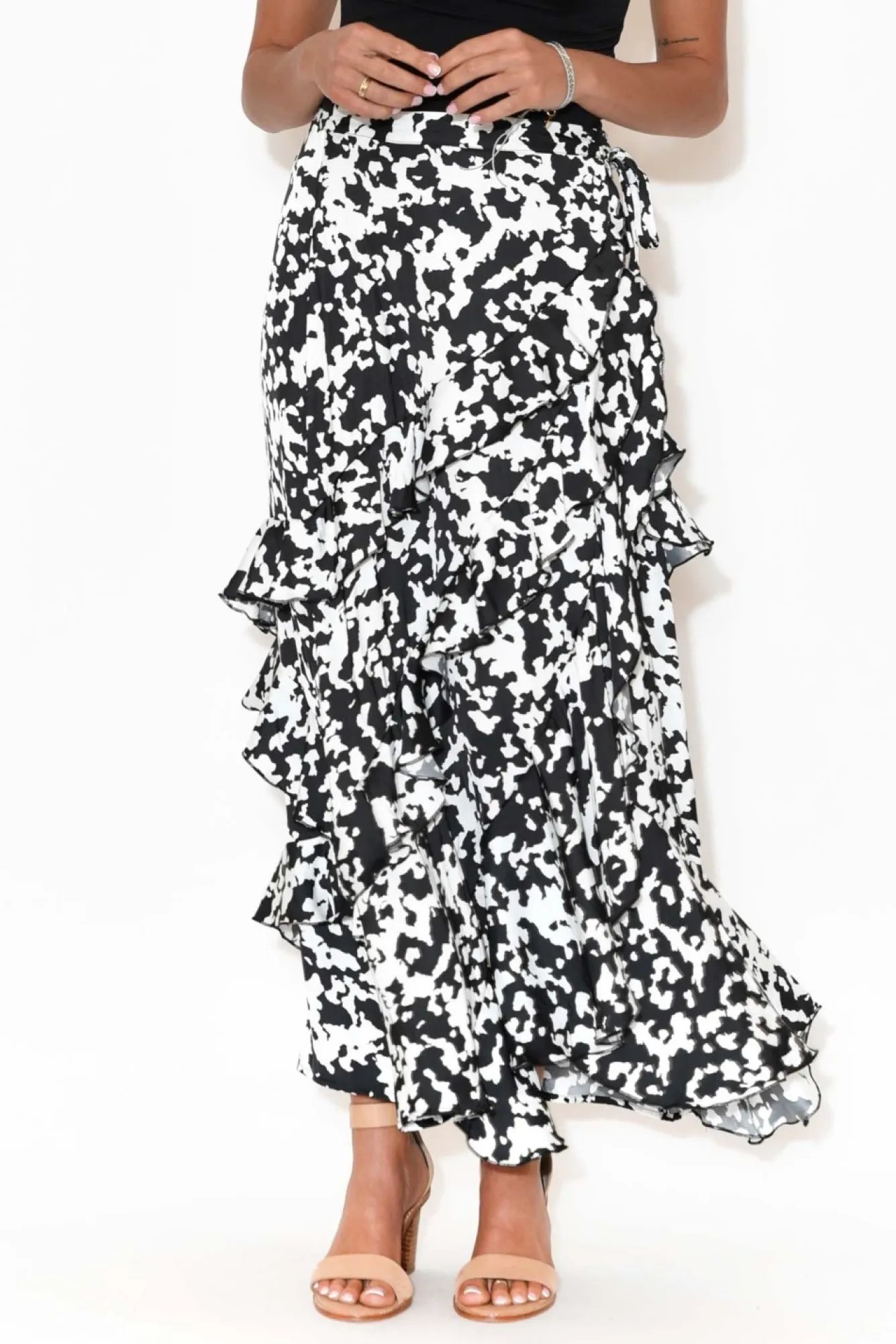 Fit: Runs Small. Refer To Size & Fit Tab Below For Specific Size Recommendation NNfabric: PolyesterNan Elegant, Silky-To-Touch Event Style In A Beautiful Abstract PrintNNnon-Stretch Waistband With Zip And Hook And Eye Closure At The Hip Increases Functionality And Ease Of Wear Ndisguise The Zip With The Attached Waist Tie – Imitate A Wrap Style Skirt Without The Fuss!Ntrue A-Line Flare Accentuated By Dramatic, Slanted Ruffled TiersNasymmetric Hemline Falls Effortlessly To Maxi LengthNNNcare: Cool Gentle Machine Wash RecommendedNNcolour: Large Black And White Speckled Print