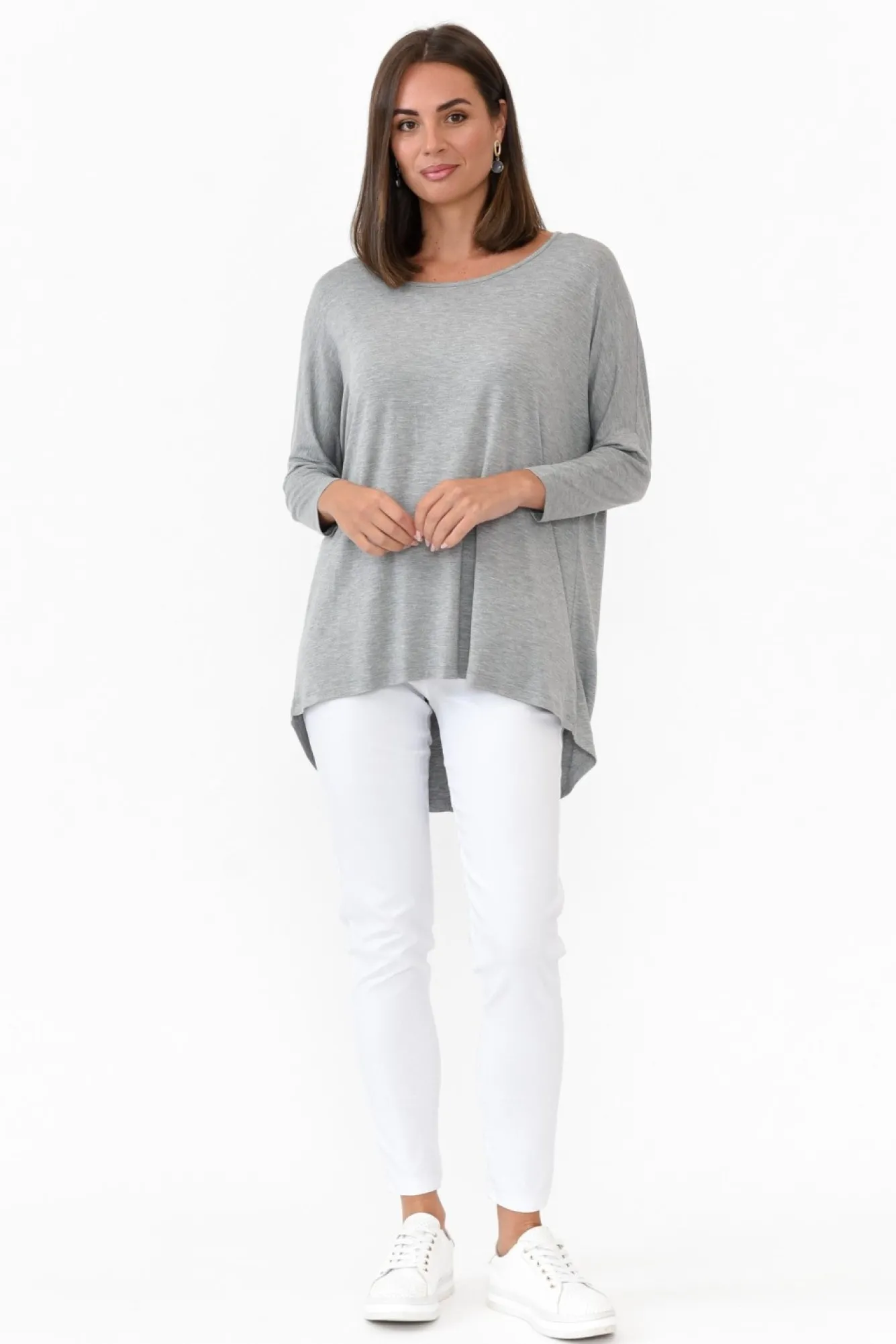Fit: Oversized. Refer To Size & Fit Tab Below For Specific Size RecommendationNNfabric: Viscose/ElastaneNan Everyday Must-Have Crafted From Lightweight, Soft And Stretchy Fabric Nwide Round Neckline Falls Below The CollarbonesNN3/4 Length Tapered Sleeves And Drop Shoulder SeamNcomfortable Relaxed FitNNhi-Lo Hemline Falls To The HipNNcare: Cool Gentle Hand Wash RecommendedNNcolour: Versatile Grey Marle Shade