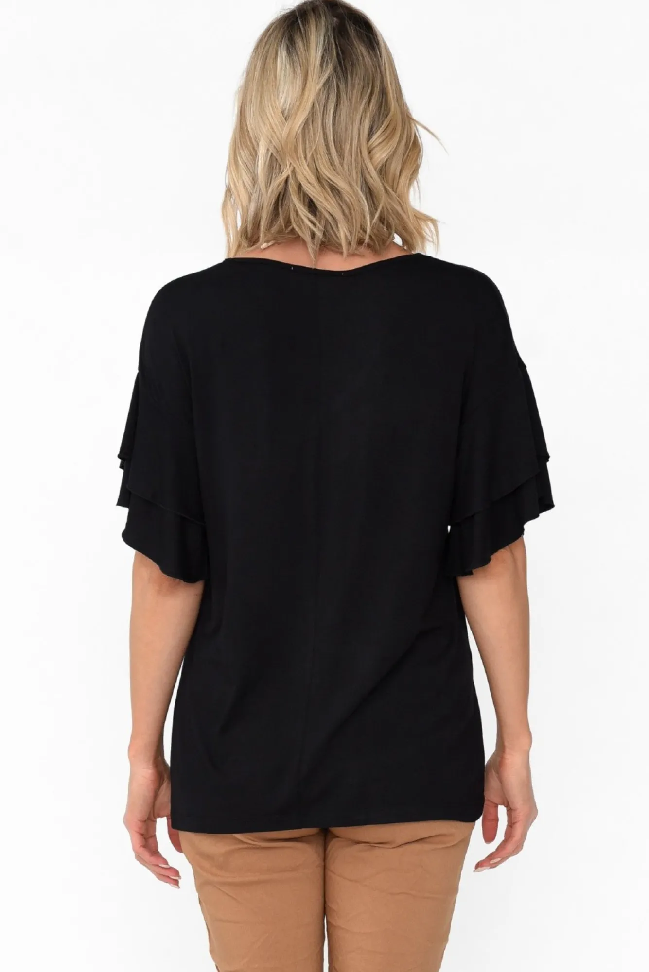 Sleeved Tops<Betty Basics Ripon Black Frill Sleeve Top
