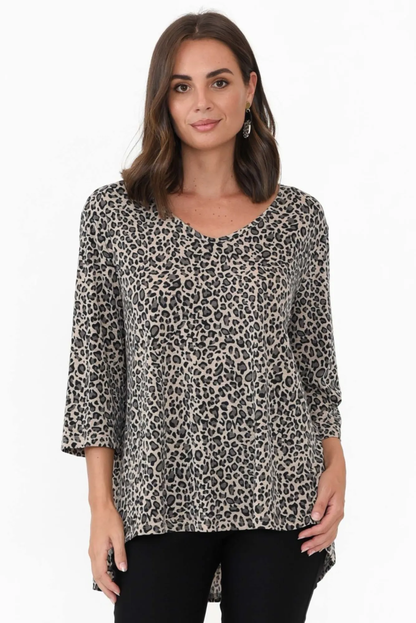 Be the first to review “Sleeved Tops<Cotton Village Sarina Brown Leopard Hi Lo Top” Cancel reply