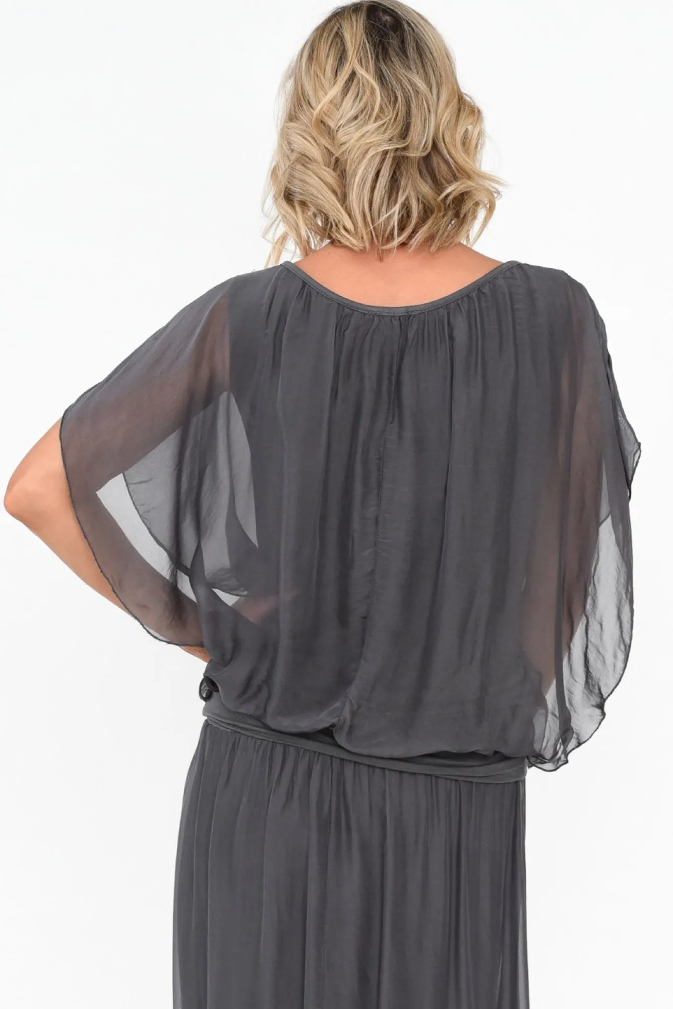 Fit: True To Size. Refer To Size & Fit Tab Below For Specific Size RecommendationNNfabric: Main: 70% Viscose, 30% Silk Lining: 95% Viscose, 5% Elastane Nmade In Italy From Ultra-Lightweight, Non-Stretch Silk Blend Fabric With A Signature Soft Hand Feel And Elevated SheenNNround Neckline Enhanced By Soft Pleating Detail NNopen Drape-Style Sleeves Cascade Down And Around The Arm NNversatile Drape Silhouette With A Tapered Jersey Hemline Nreaches Above Hip Length NNNcare: Cool Gentle Hand Wash RecommendedNNcolour: Elegant Charcoal Hue