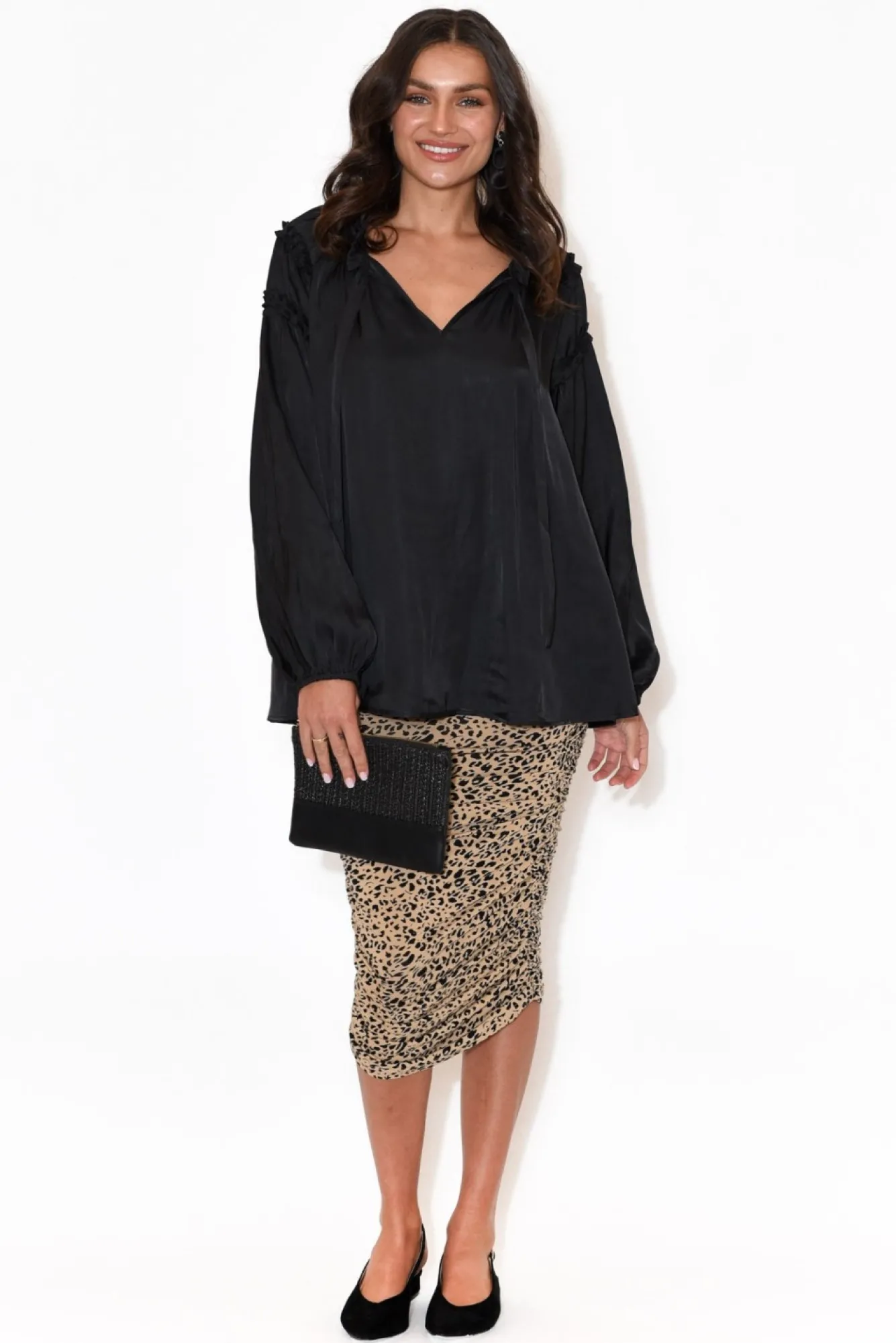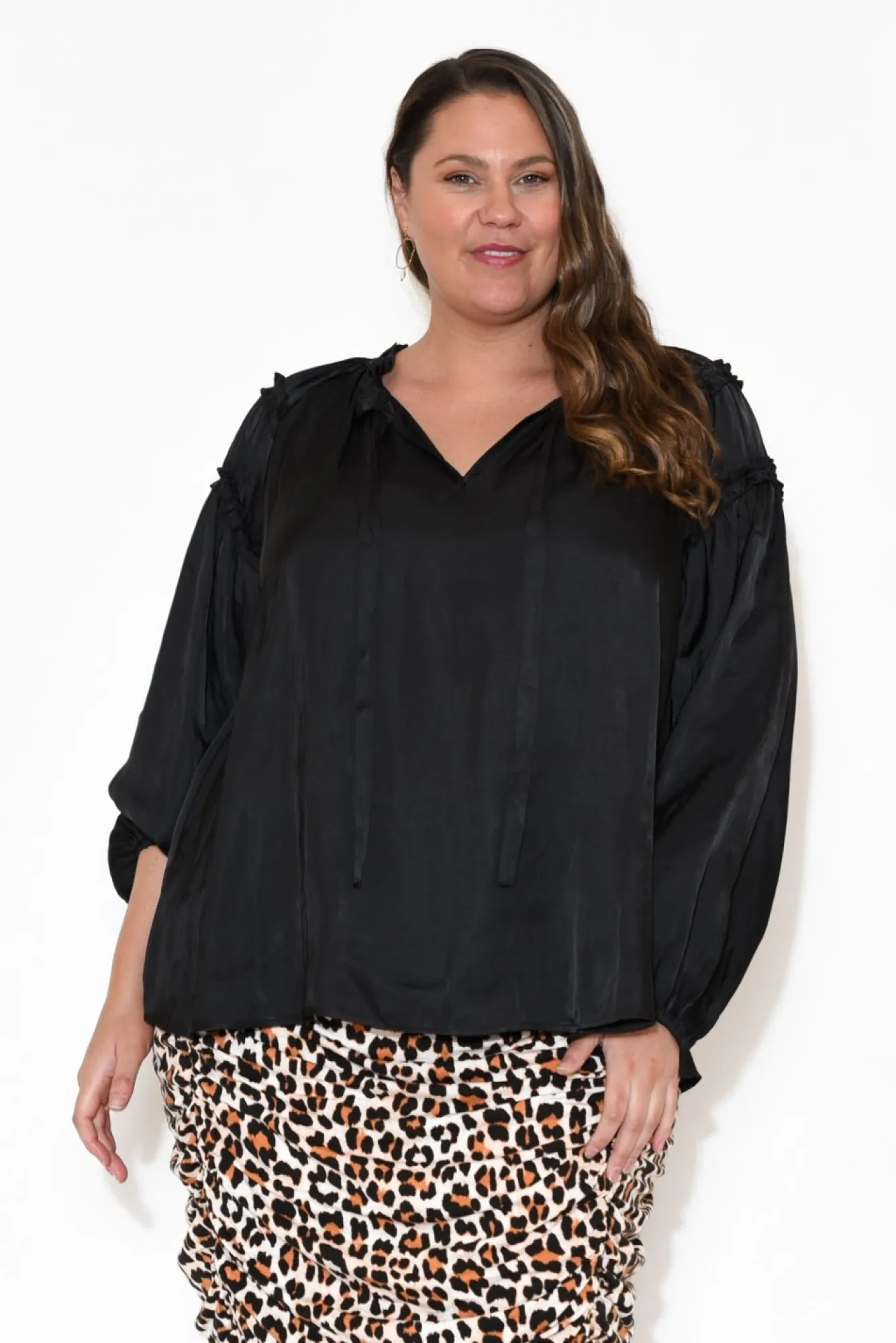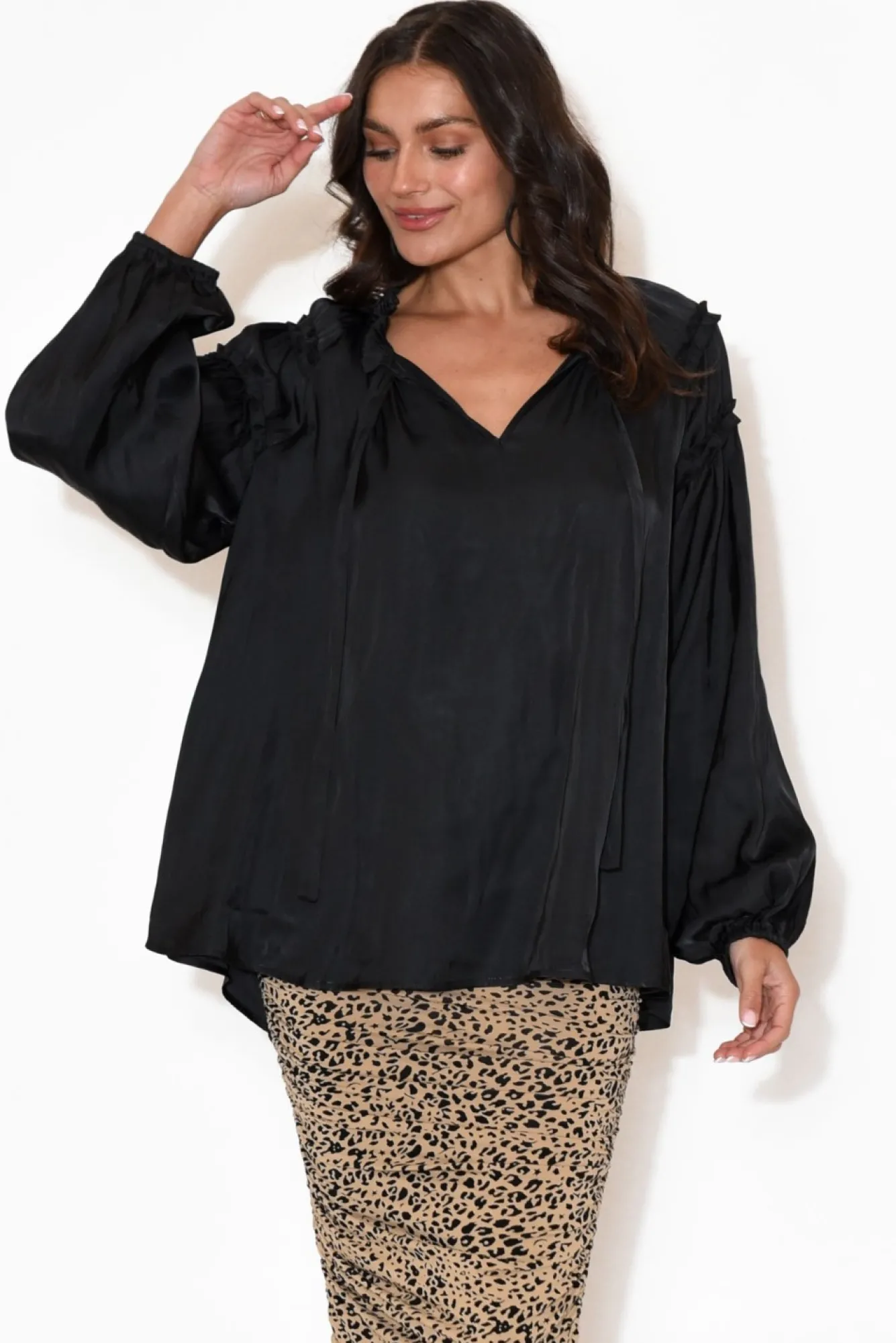 Fit: True To Size. Refer To Size & Fit Tab Below For Specific Size Recommendation NNfabric: 100% PolyesterNtransition From The Office To Dinner Seamlessly With This Silky-To-Touch GarmentNNdesigned With An Elegant Neckline Ruffle And V-Split – Secure With Ribbon Tie For Bonus CoverageNNfeature Gathering At Neckline, Shoulders And Cuffs Create Intricate Pleating Nfull Length Billow Sleeves With Elasticised Cuffs For ComfortNNruffled Seams Define And Compliment The ShouldersNNclassy A-Line Flare Creates Beautiful DrapeNNsubtle Curved Hemline Falls To The HipNNcare: Cool Gentle Machine Wash RecommendedNNcolour: Staple Black