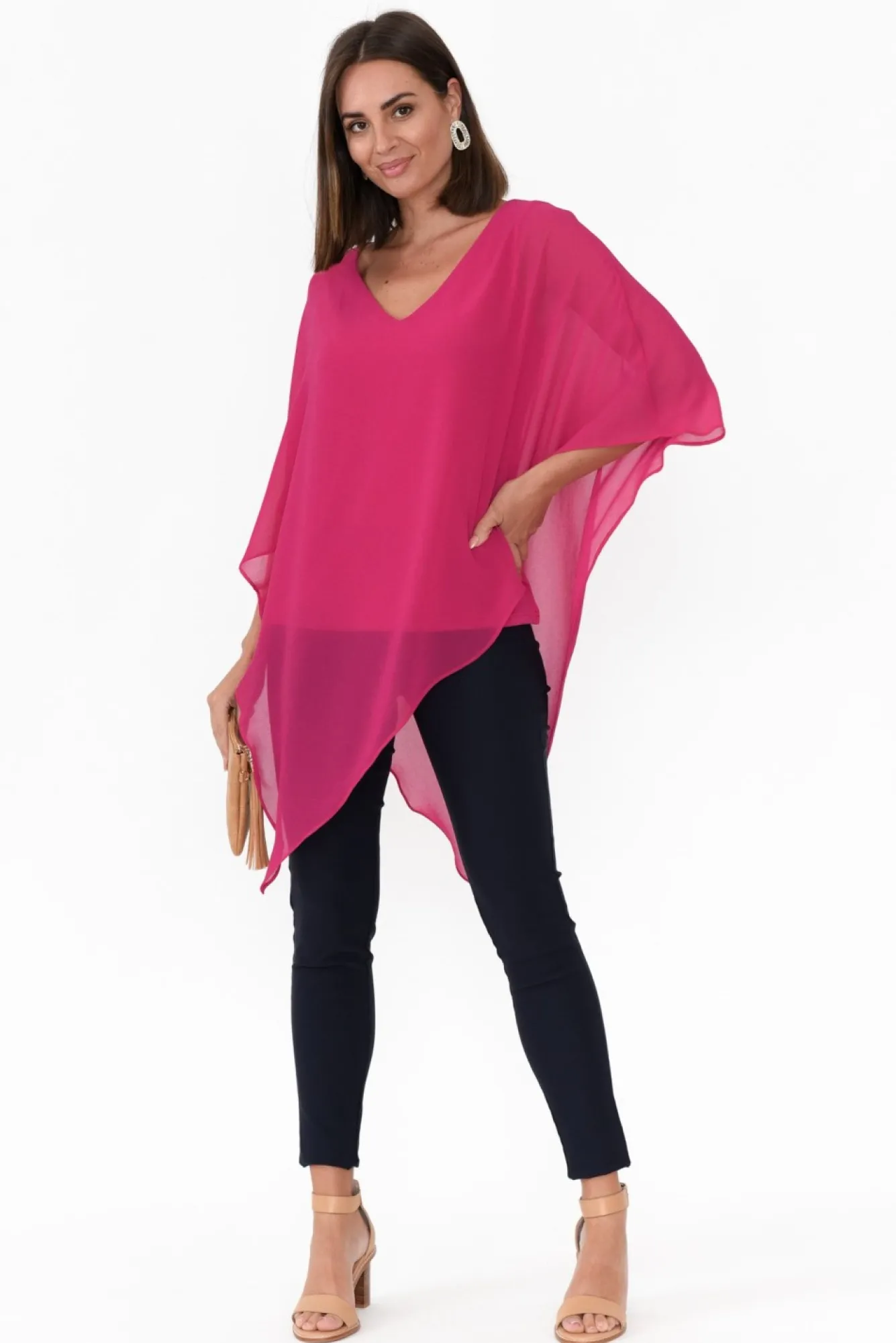 Fit: True To Size. Refer To Size & Fit Tab Below For Specific Size Recommendation NNfabric: Outer: 100% Polyester Lining: 92% Polyester 8% ElastaneNa Fabulous And Unique Drape Top Made From Lightweight, Non-Stretch And Smooth Fabric Featuring A Stretchy And Comfortable Lining Ndesigned As A Hot Pink Stretchy Tank With A Sheer Asymmetric OverlayNcrafted In AustraliaNsoft V-NecklineNNgorgeous Half-Length Drape Sleeves NNflattering Drape Silhouette Nasymmetric Hemline Falls Below Hip Length NNNcare: Cool Gentle Machine Wash RecommendedNNcolour: Hot Pink Shade