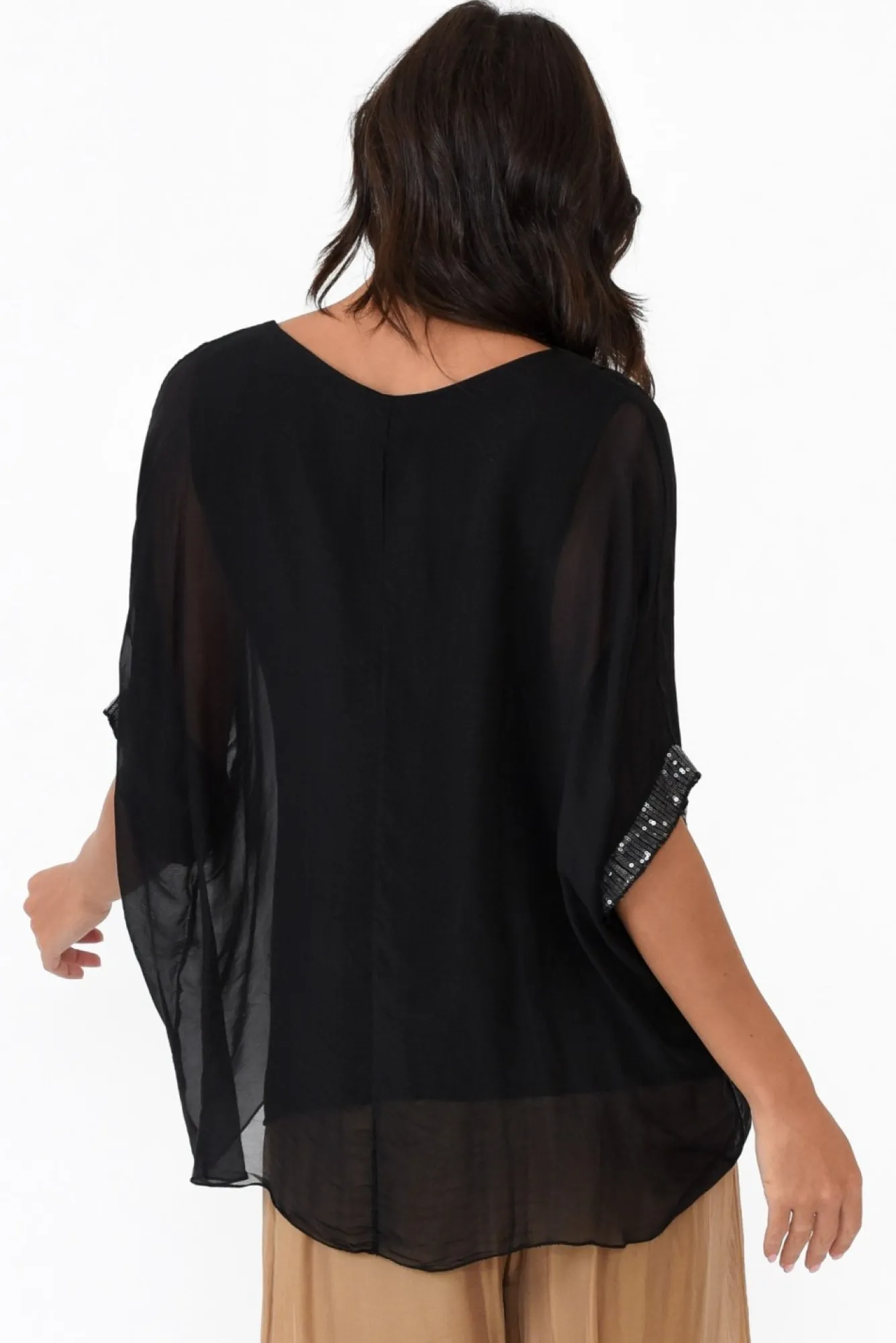 Be the first to review “Sleeved Tops<La Strada Parker Black Silk Sequin Top” Cancel reply