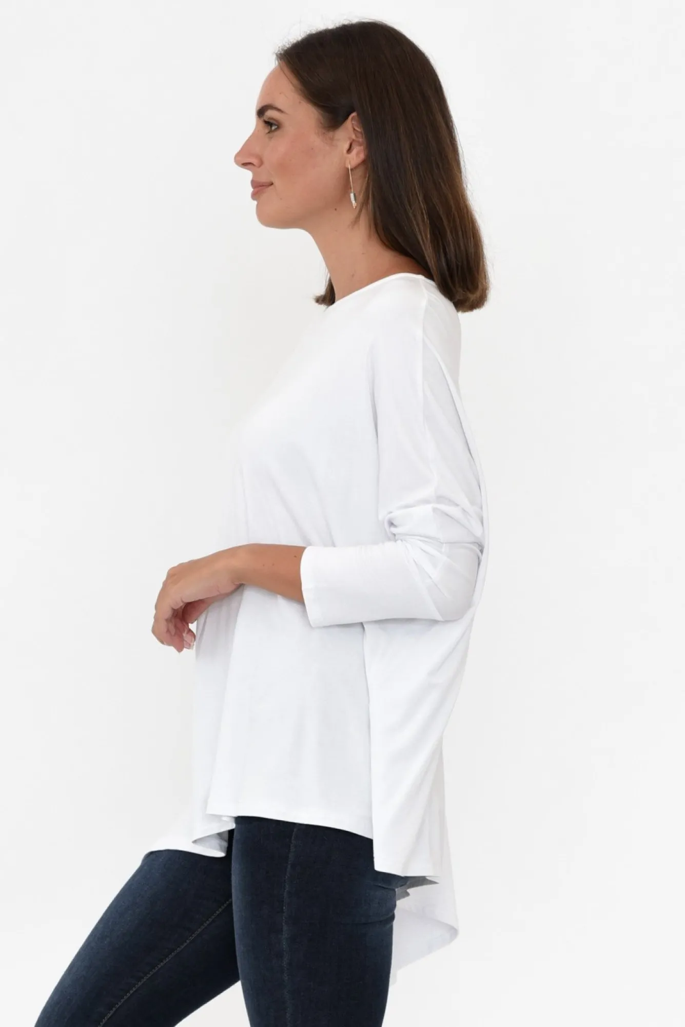 Fit: One Size. Refer To Size & Fit Tab Below For Specific Size RecommendationNNfabric: 93% Bamboo, 7% ElastaneNluxuriously Soft And Stretchy Midweight Bamboo GarmentNslightly Sheer Fabric, We Recommend Wearing Nude UndergarmentsNNmodest Round NecklineN3/4 Drop Shoulder SleevesNNrelaxed, Boxy SilhouetteNfeatures A Dramatic, Asymmetric HemlineNstyle Falls Below The HipNNNcare: Cool Gentle Machine Wash RecommendedNNcolour: Crisp White Shade
