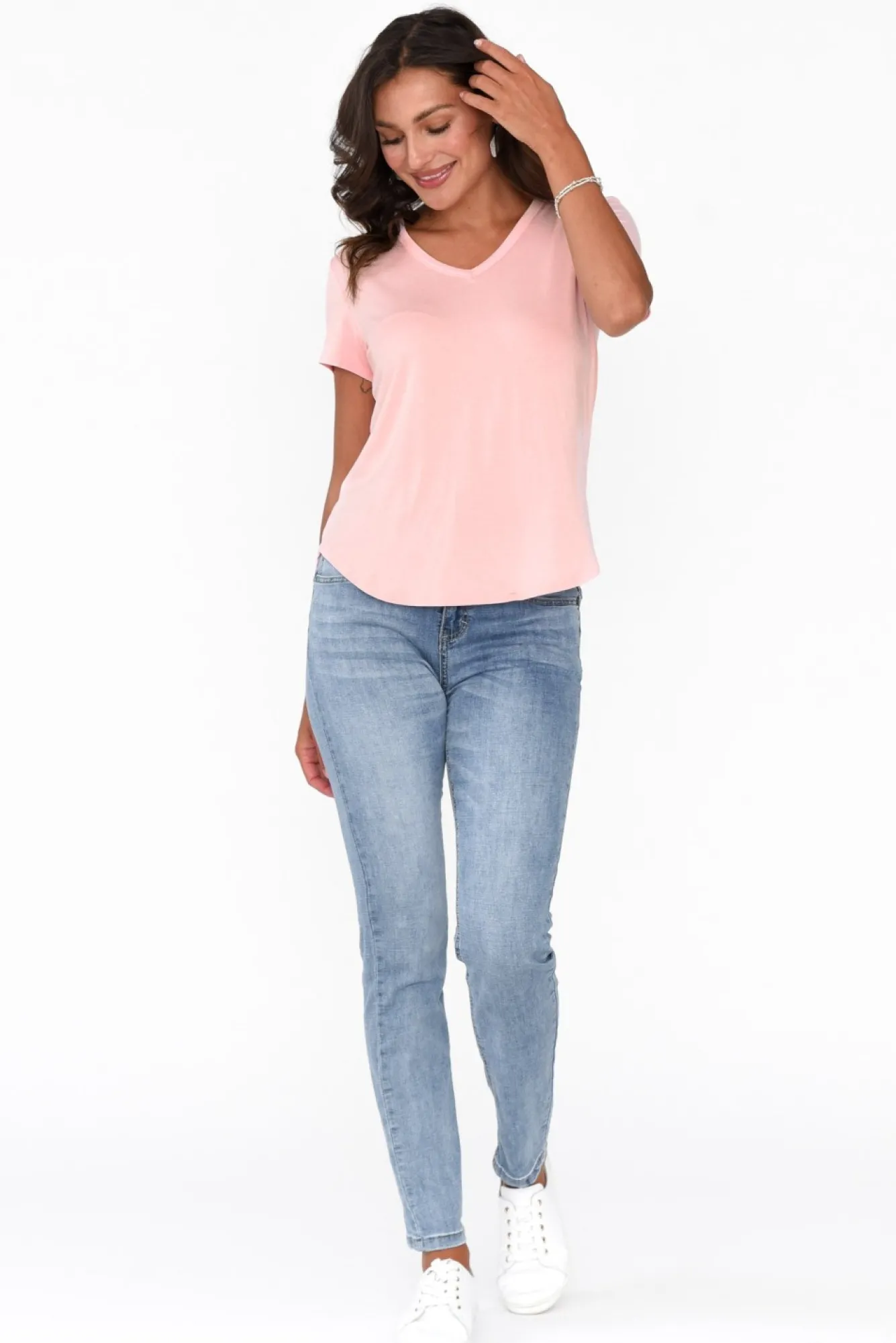 Fit: True To Size. Refer To Size & Fit Tab Below For Specific Size RecommendationNNfabric: 93% Bamboo, 7% ElastaneNcrafted From Ultra-Breathable And Moisture-Wicking Bamboo Fabric Designed With A Silk-Soft Hand Feel And Comfortable Stretch Ndecolletage Highlighted By V-Neckline Nshort Tee-Style Sleeves Nsimple Straight Silhouette – Perfect For Everyday Wear!Nfeaturing A Curved Hi-Lo Hemline That Falls To The Hips NNNcare: Cool Gentle Machine Wash RecommendedNNcolour: Soft Pink Rose Shade