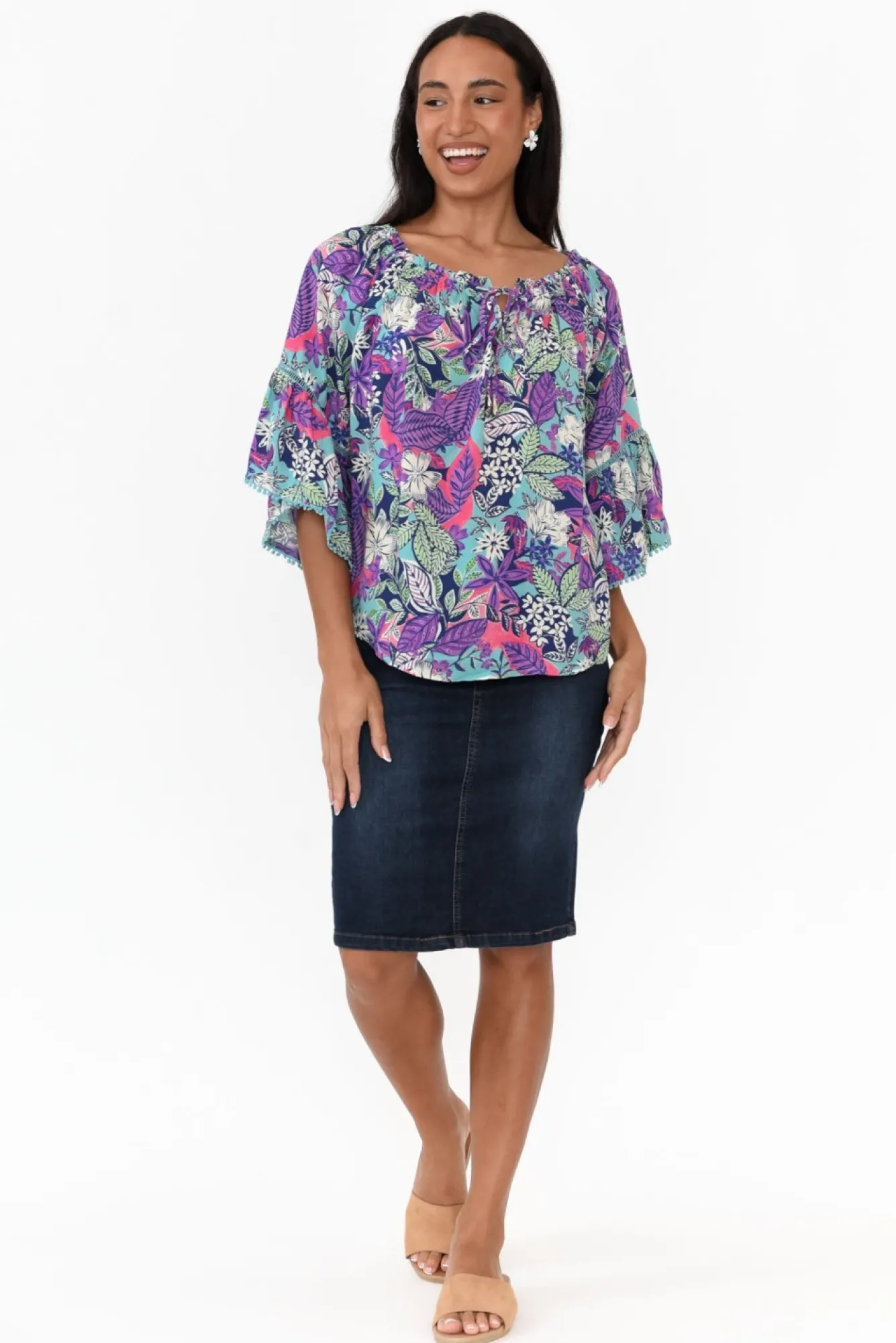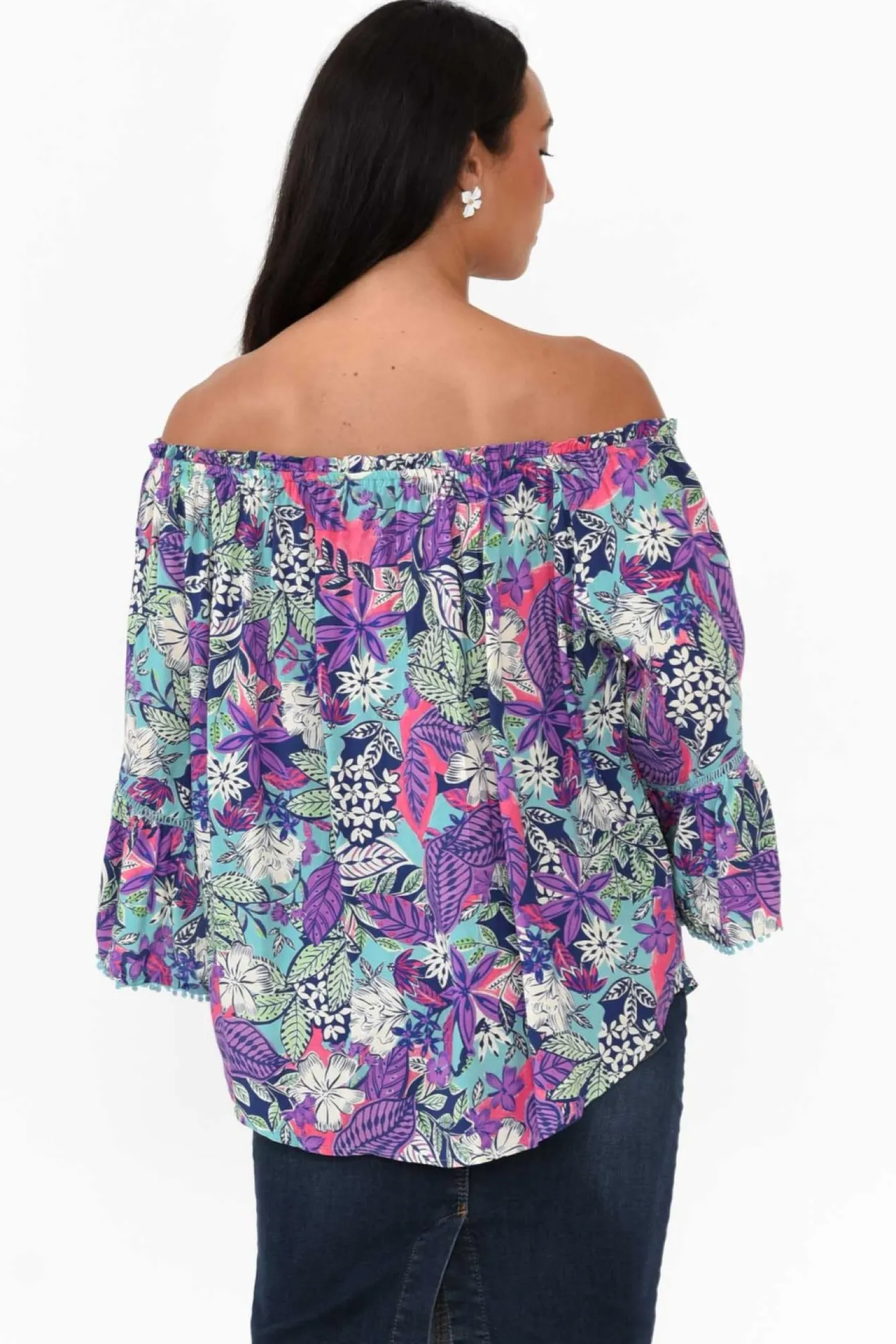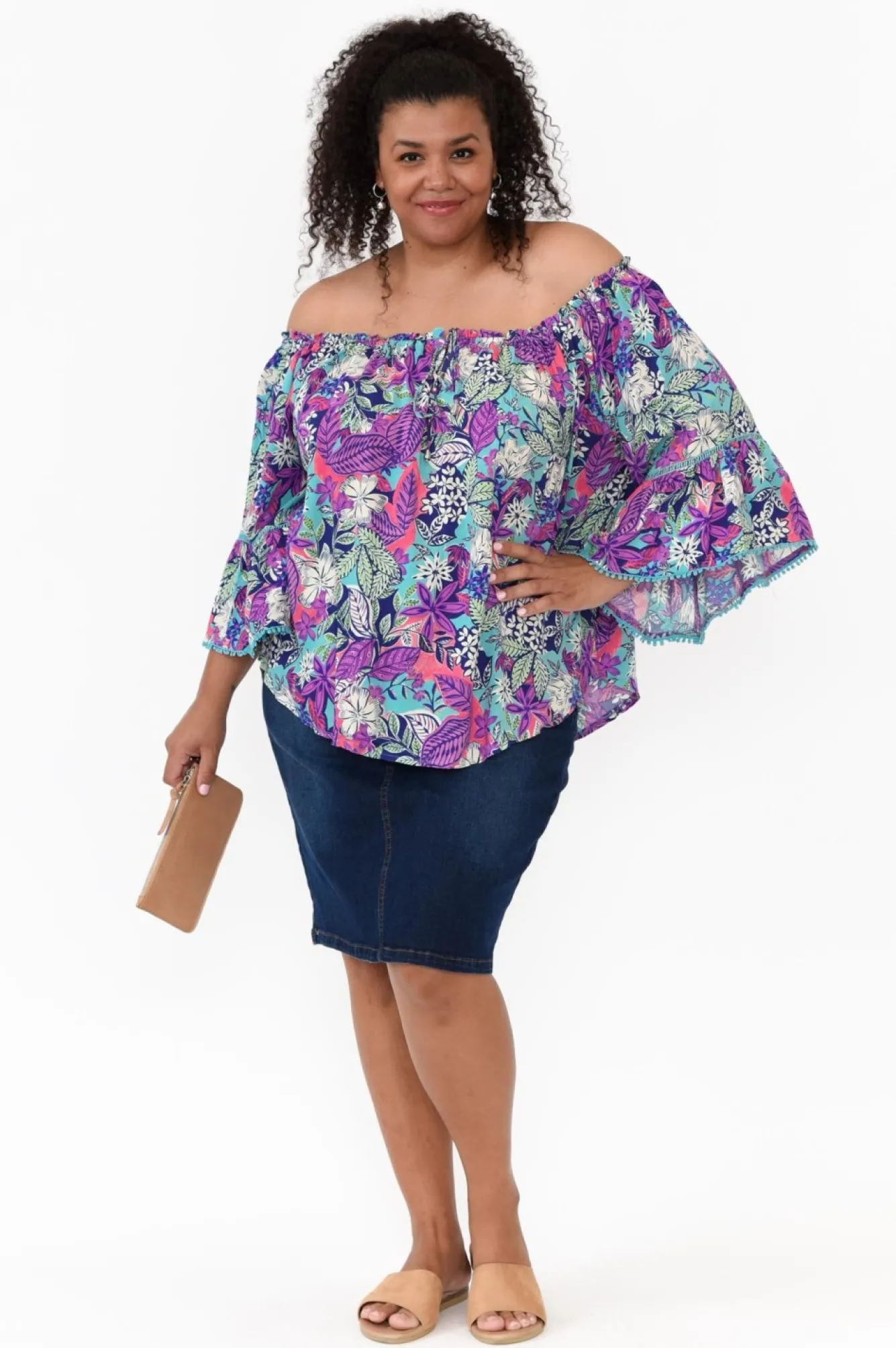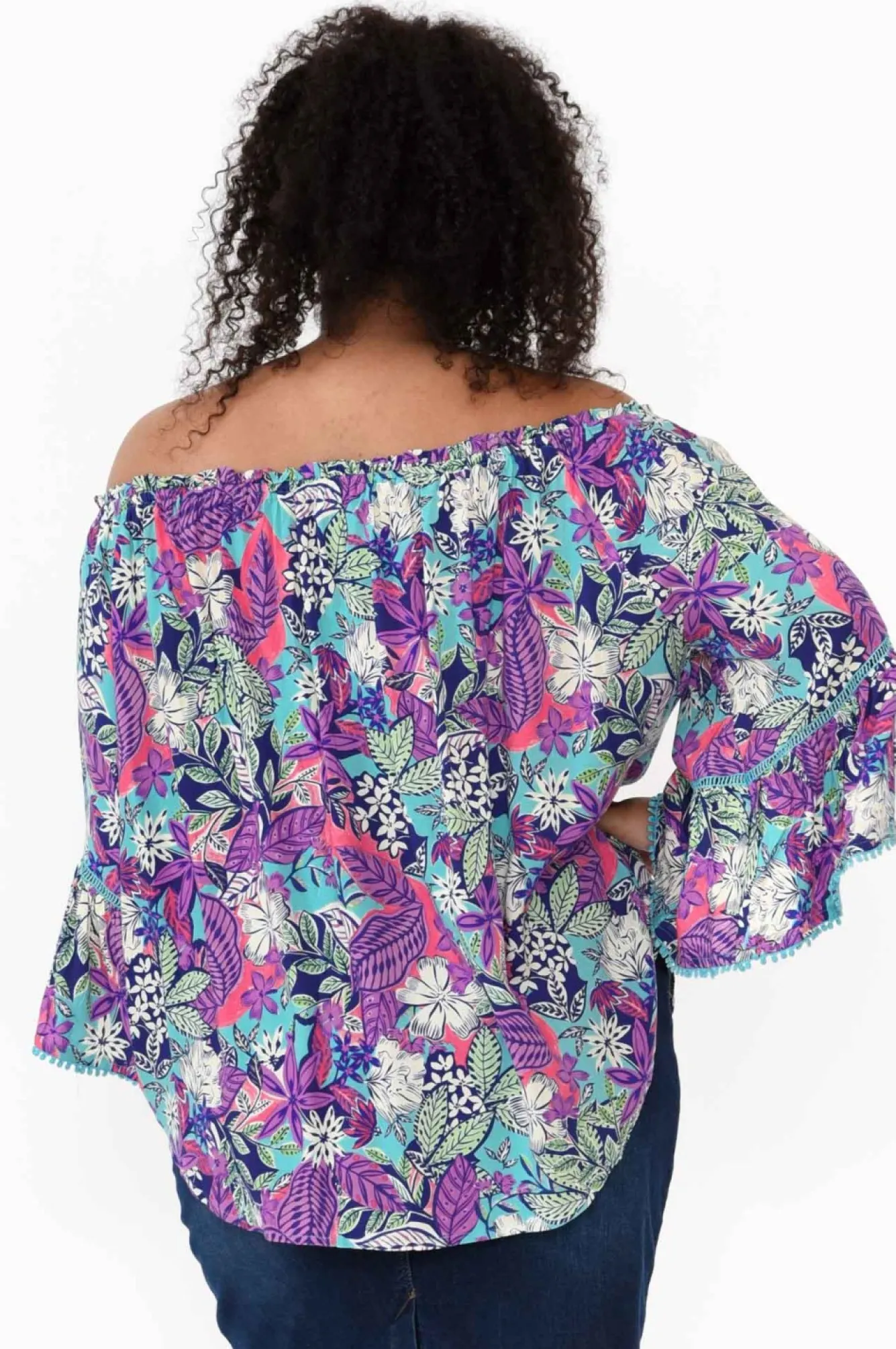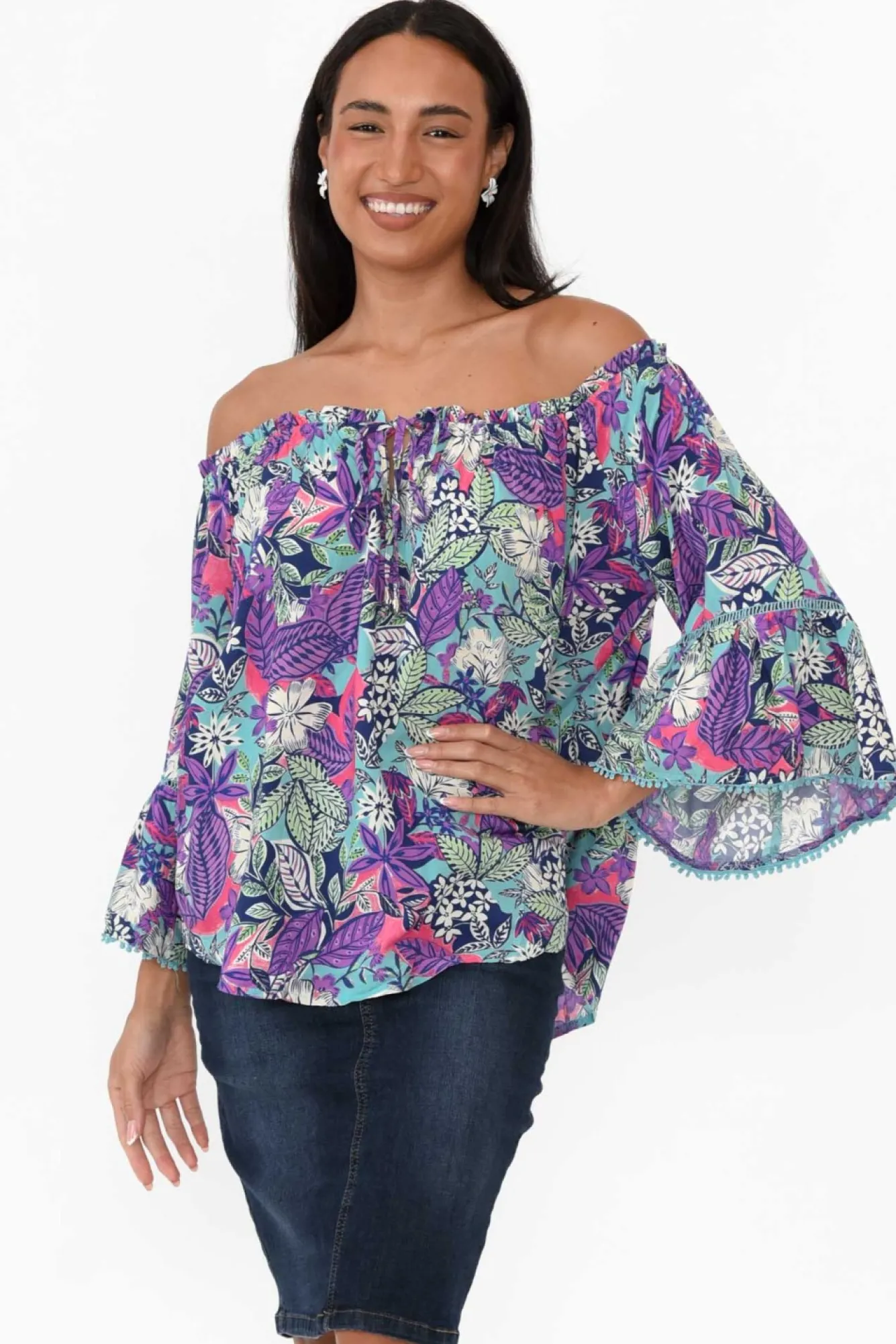 Sleeved Tops<New U Collection Budapest Purple Tropical Off Shoulder Top