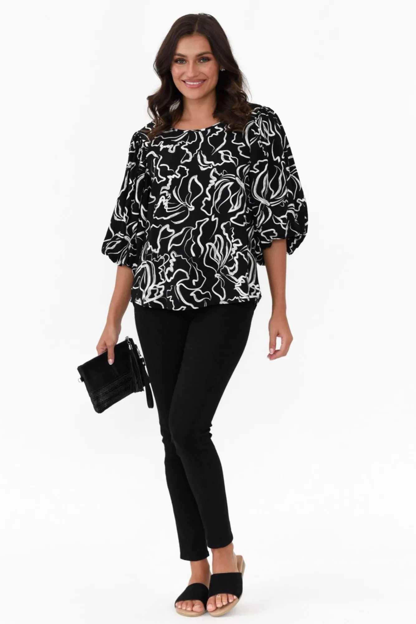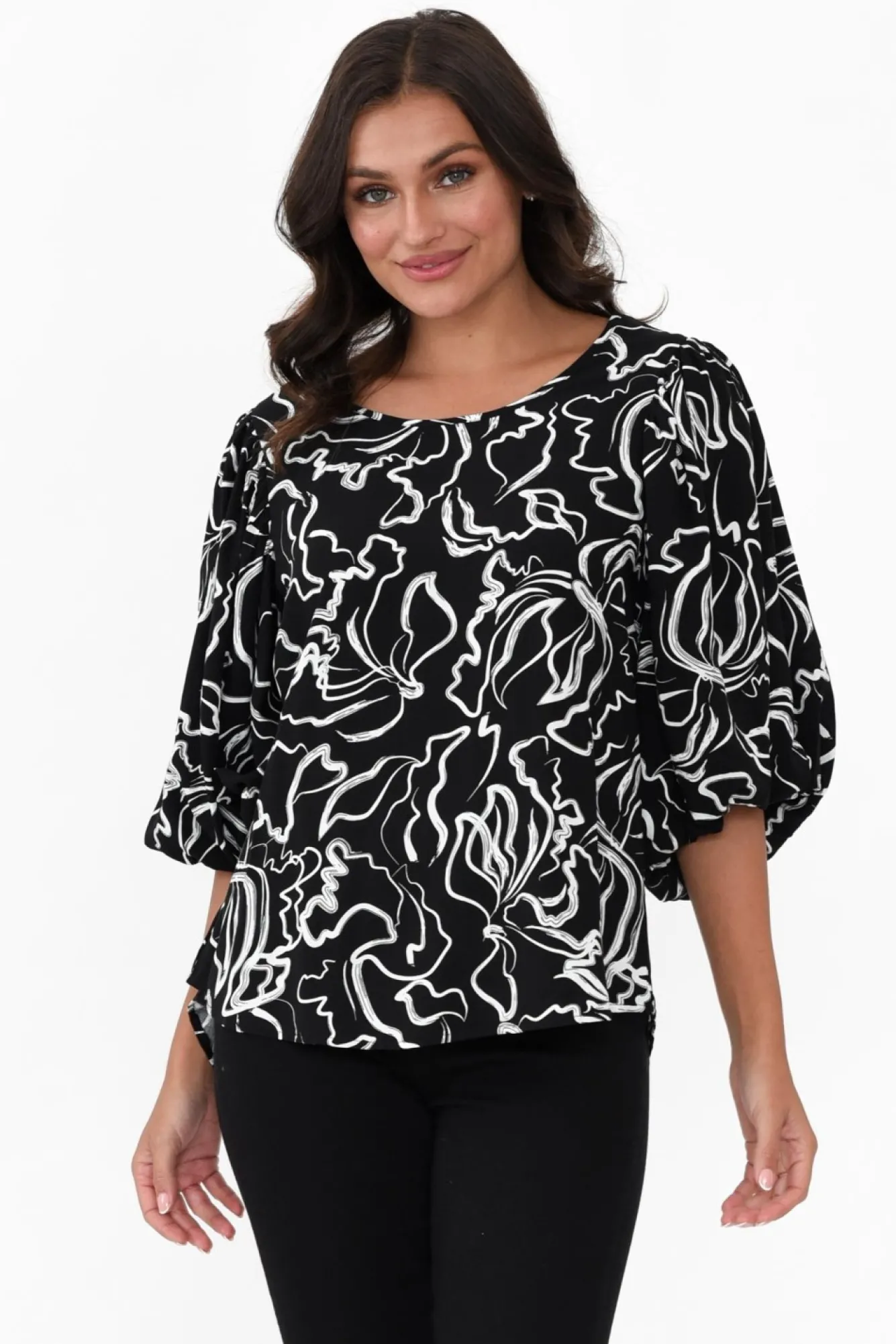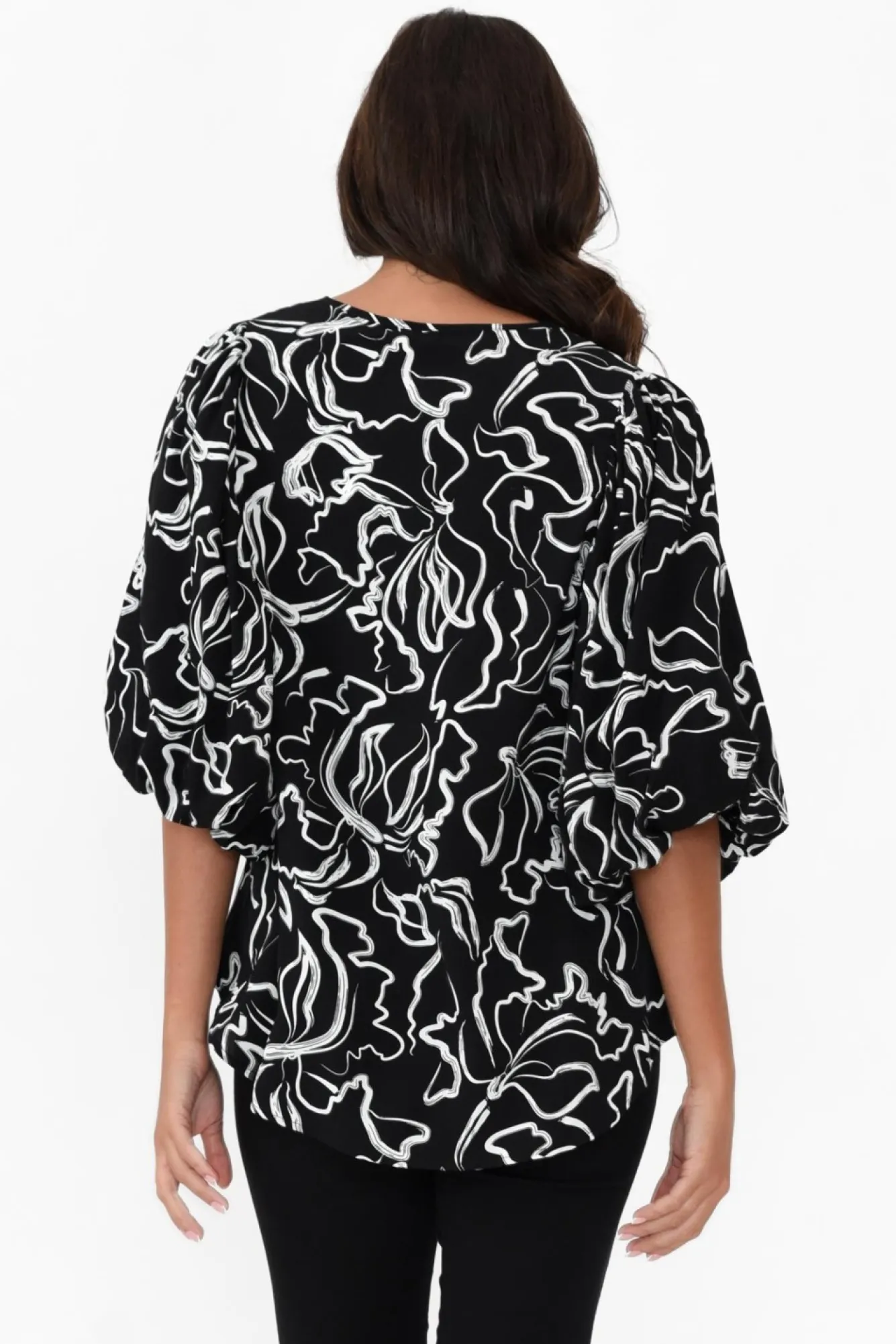Be the first to review “Sleeved Tops<New U Collection Heath Black Abstract Puff Sleeve Top” Cancel reply
