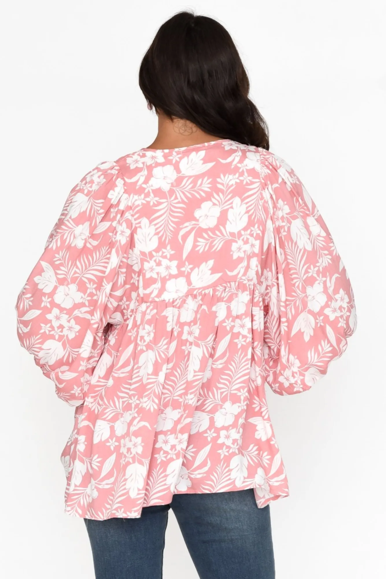 Sleeved Tops<New U Collection Marylee Pink Garden Gathered Top