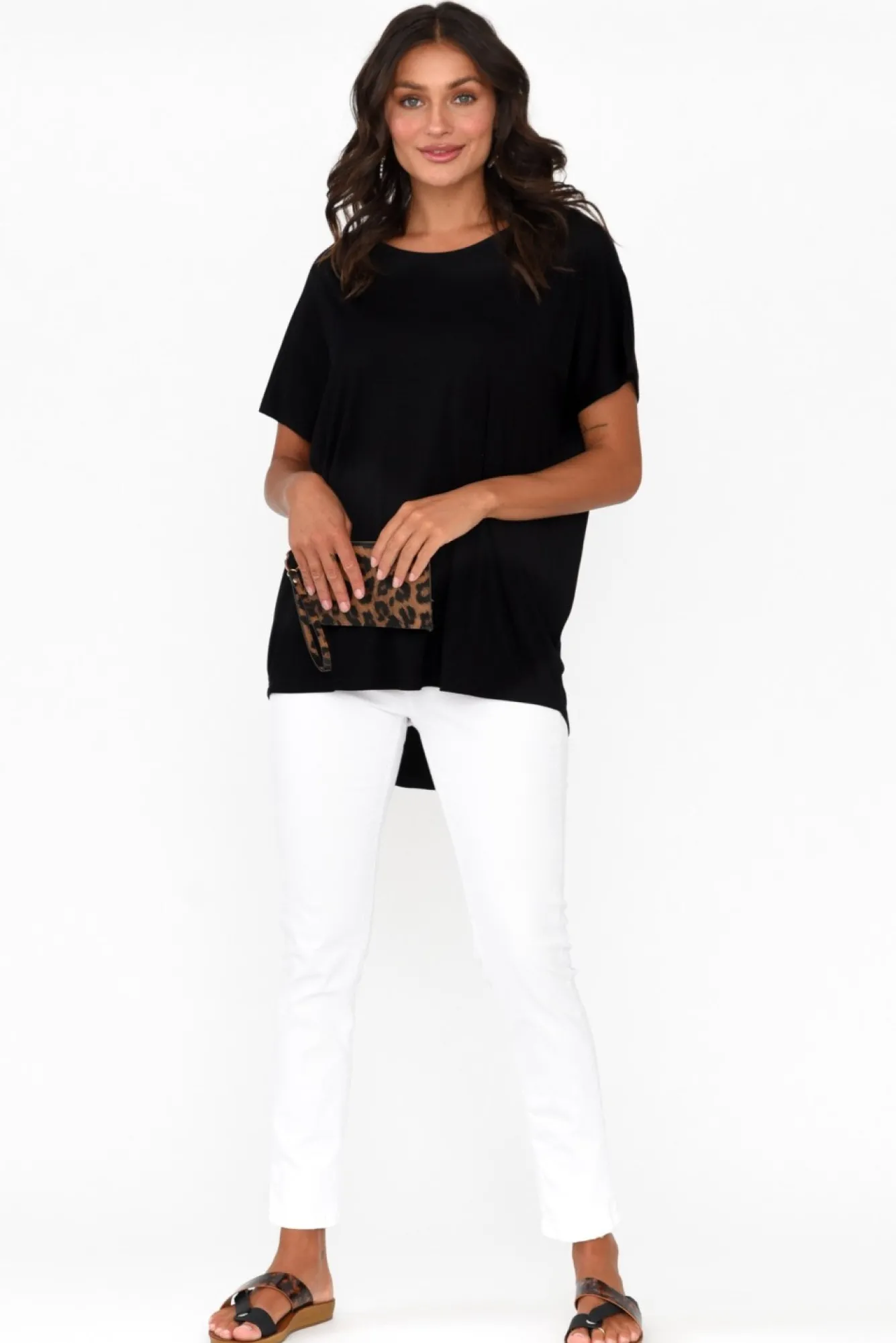 Fit: True To Size. Refer To Size & Fit Tab Below For Specific Size RecommendationNNfabric: 95% Bamboo Viscose, 5% SpandexNdesigned In A Bamboo Blend With Ultra-Stretchy, Soft And Breathable QualitiesNclassic Round Neckline Nshort, Tee-Style Sleeves Nversatile Straight Silhouette In A Relaxed Fit NNdramatic Hi-Lo, Curved Hemline Provides More Coverage At The BackNNNcare: Cool Gentle Machine Wash RecommendedNNcolour: Midnight Black