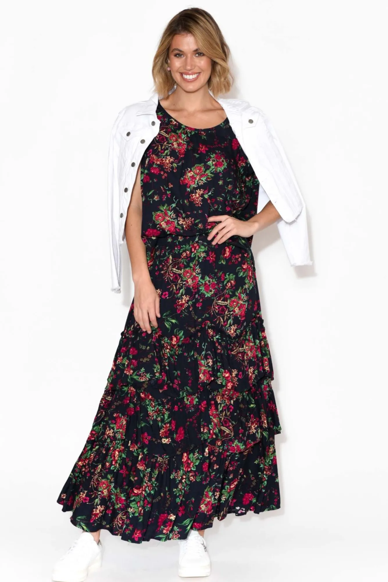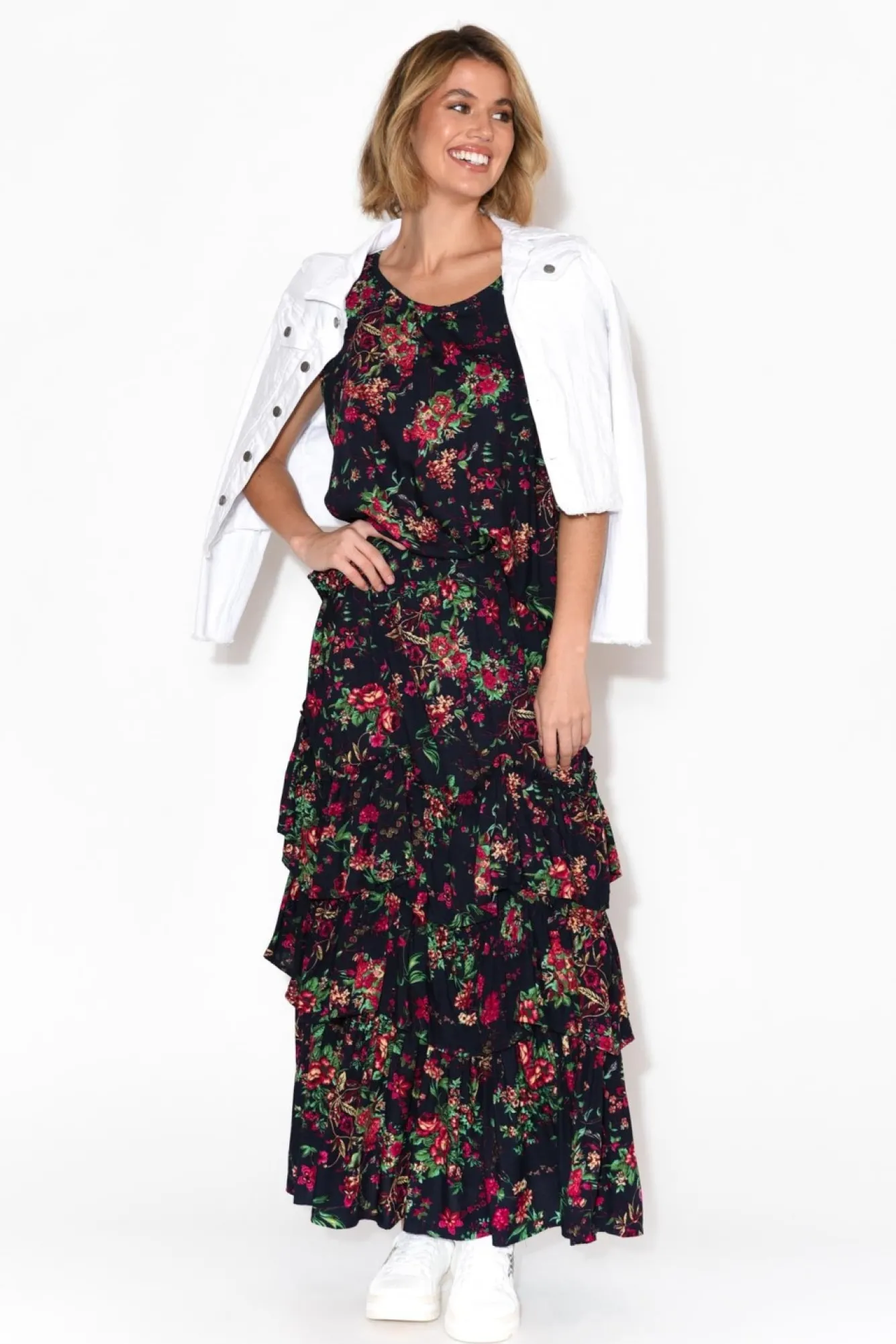 Fit: True. Refer To Size & Fit Tab Below For Specific Size Recommendation NNfabric: 100% RayonNlightweight, Breathable Non Stretch FabricNclassic Rounded NecklineNflattering Pleating On Centre Bust Nshort Flutter Sleeves Nrelaxed FitNcurved Hemline Nhip Skimming Length NNcare: Cool Gentle Hand Wash RecommendedNNcolour: Rose Florals On A Deep Navy Base