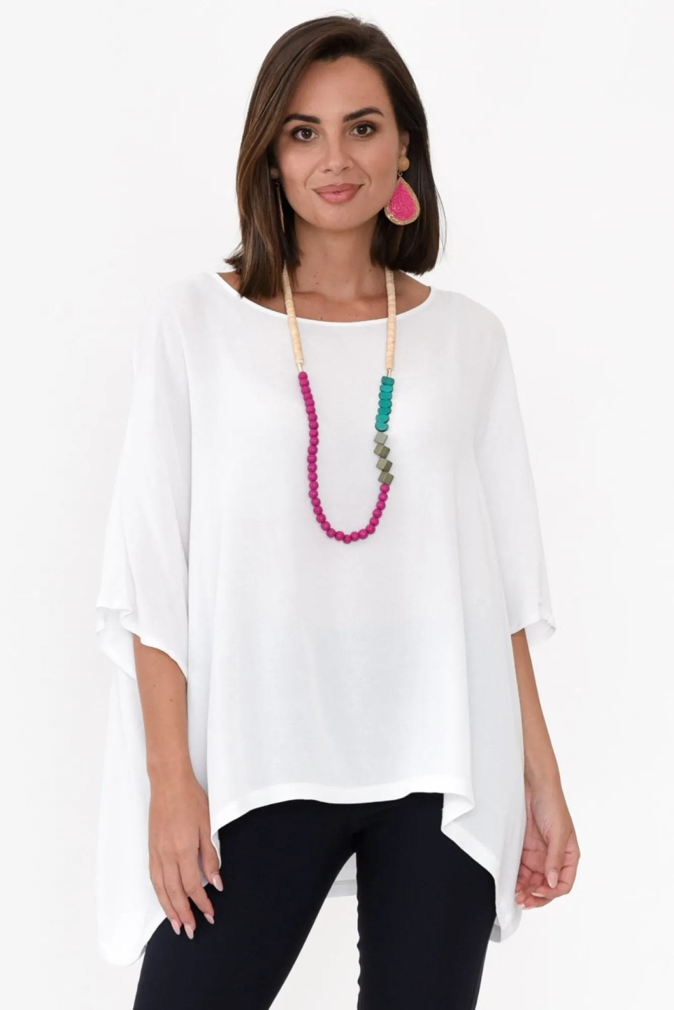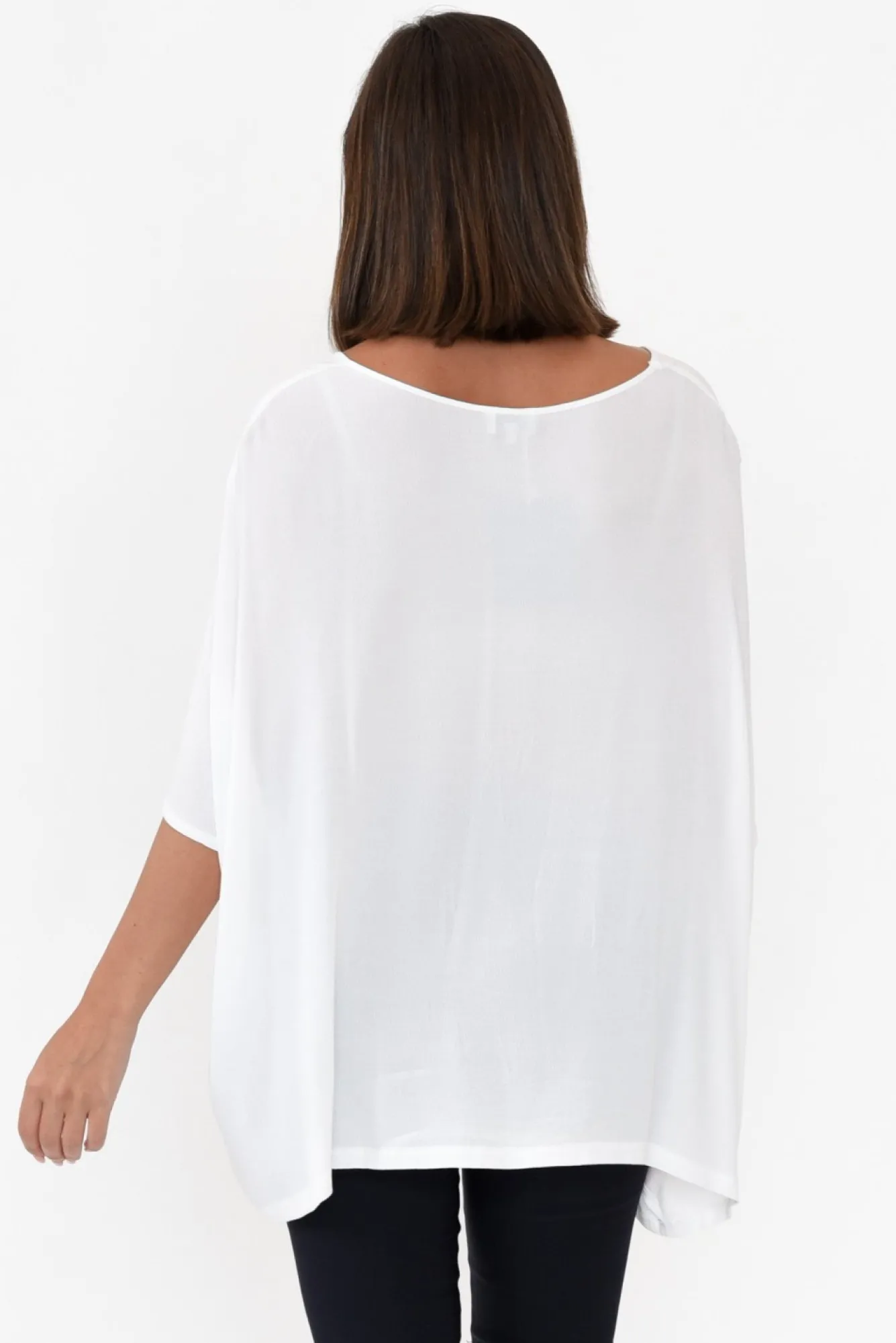 Fit: True. Refer To Size & Fit Tab Below For Specific Size RecommendationNNfabric: 100% RayonNlightweight, Soft And Breathable Non-Stretch Fabricround NecklineN3/4 Length SleevesNNdraping SilhouetteNdraped Shape Falls To A Flattering Asymmetrical HemlineNNcare: Cool Gentle Hand Wash RecommendedNNcolour: Classic WhiteNNstyle Tip: This Fabric Is Sheer – We Recommend Pairing With Your Favourite Camisole For Additional Coverage