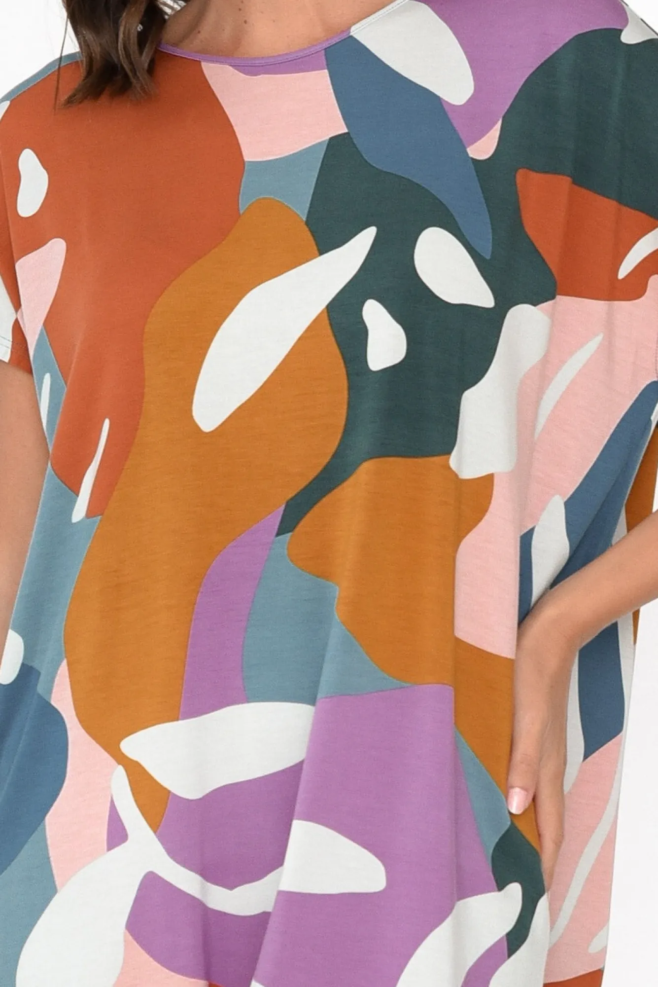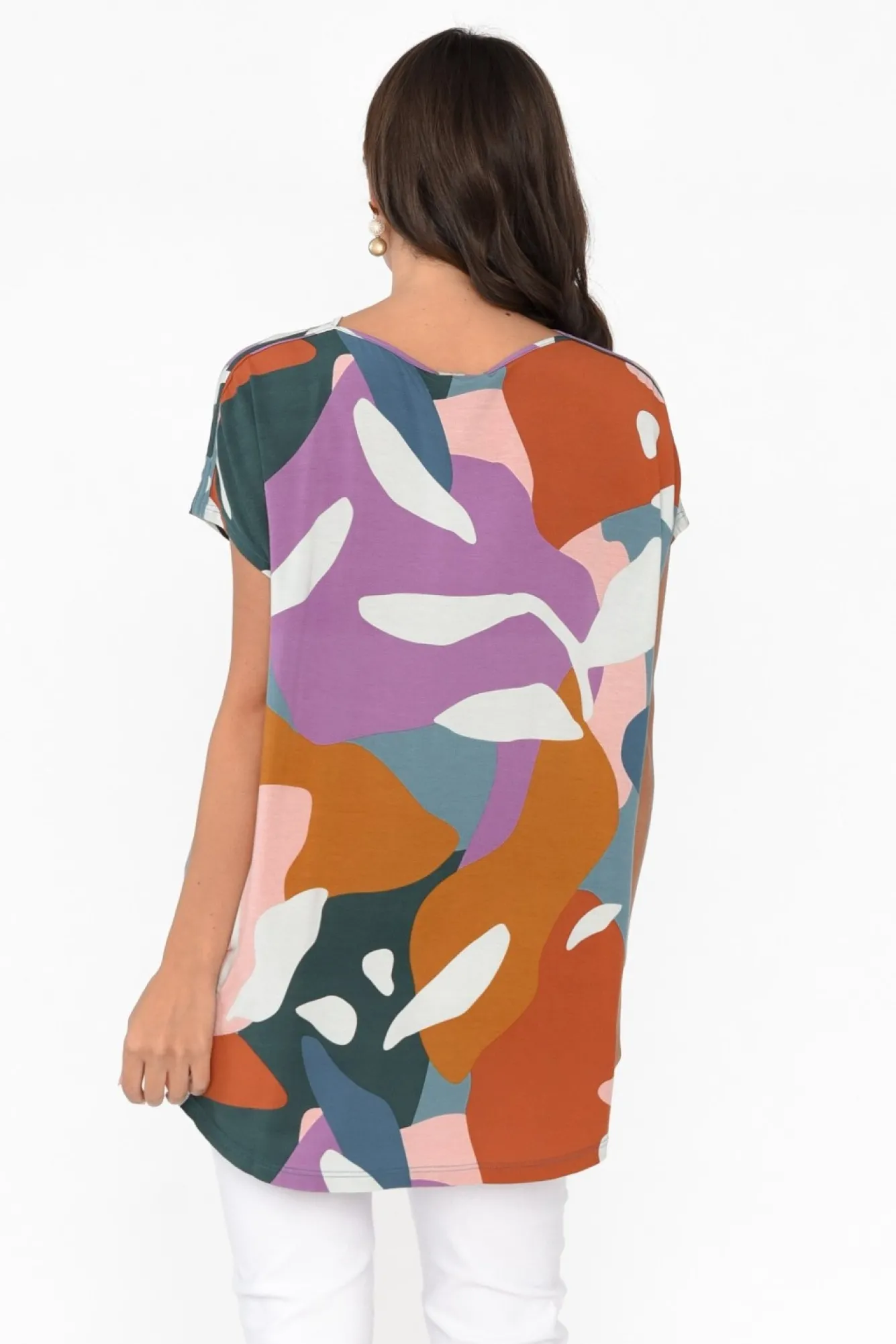 Fit: True To Size. Refer To Size & Fit Tab Below For Specific Size RecommendationNNfabric: 96% Micromodal®, 4% Lycra®Nlightweight, Breathable Ultra-Soft And Stretchy Micro Modal Fabric Made From Sustainably Sourced Beechwood FibresNwide Round Neckline Leads To Shoulder Seam Detailing NNshort Cap-Style Sleeves NNversatile Drape Silhouette In An Eye-Catching Print NNstraight Hemline Falls To The Hips NNcare: Cool Gentle Machine Wash RecommendedNNcolour: Oversized Abstract Print In Tropical Hues