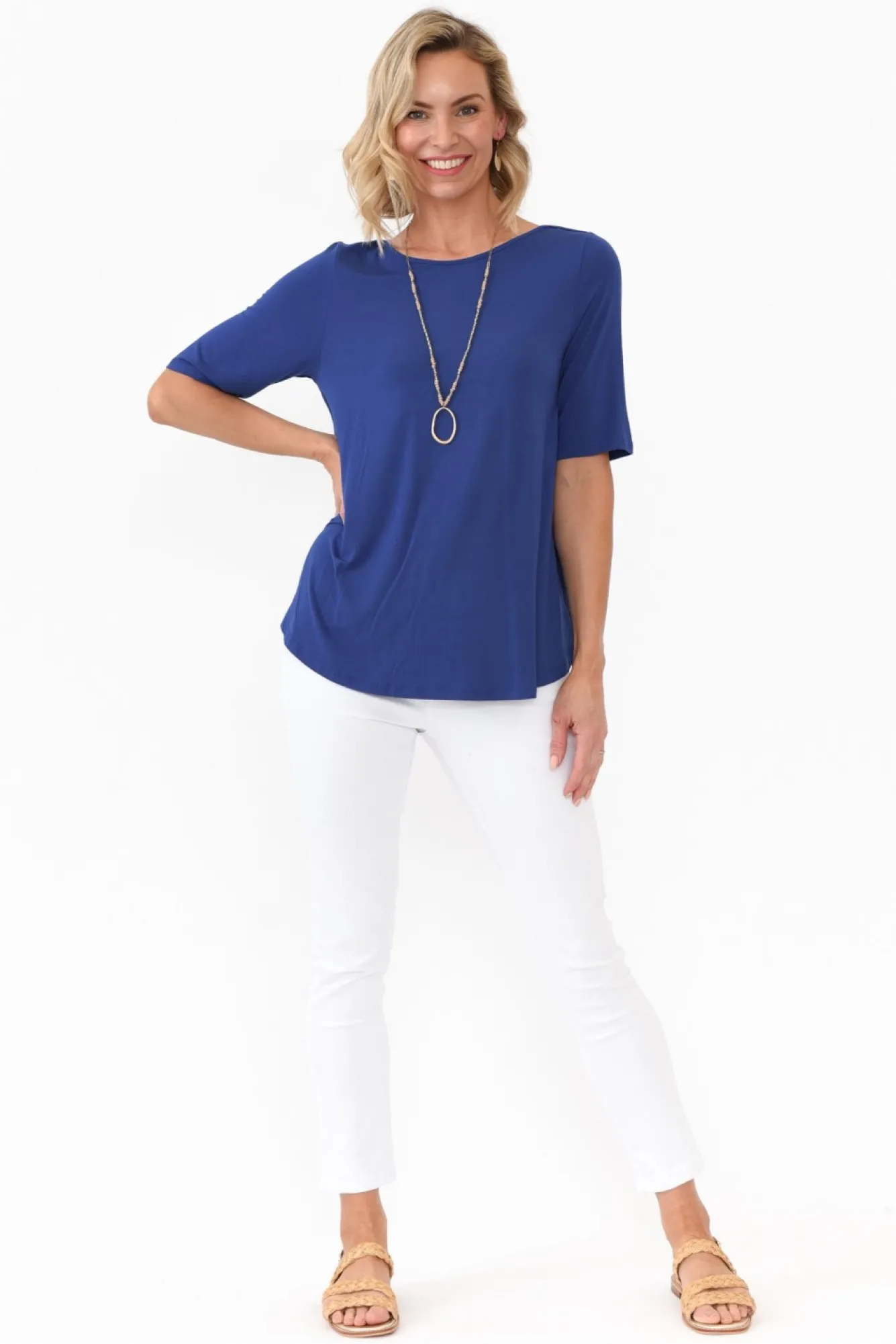 Fit: True. Refer To Size & Fit Tab Below For Specific Size RecommendationNNfabric: 96% Micromodal®Air, 4% LycraNmicro Modal Fabric Is Perfectly Lightweight, Breathable, Buttery Soft And Ultra-Stretchy – A True Wardrobe Hero!Nfabric Sustainably Sourced From Beechwood FibresNwide Round Neckline With Seam Details On ShoulderNhalf-Length SleevesNswing Silhouette Flatters The Waist And HipsNcurved Hemline Skims The HipsNNcare: Cool Gentle Machine Wash RecommendedNNcolour: Stunning Cobalt Blue