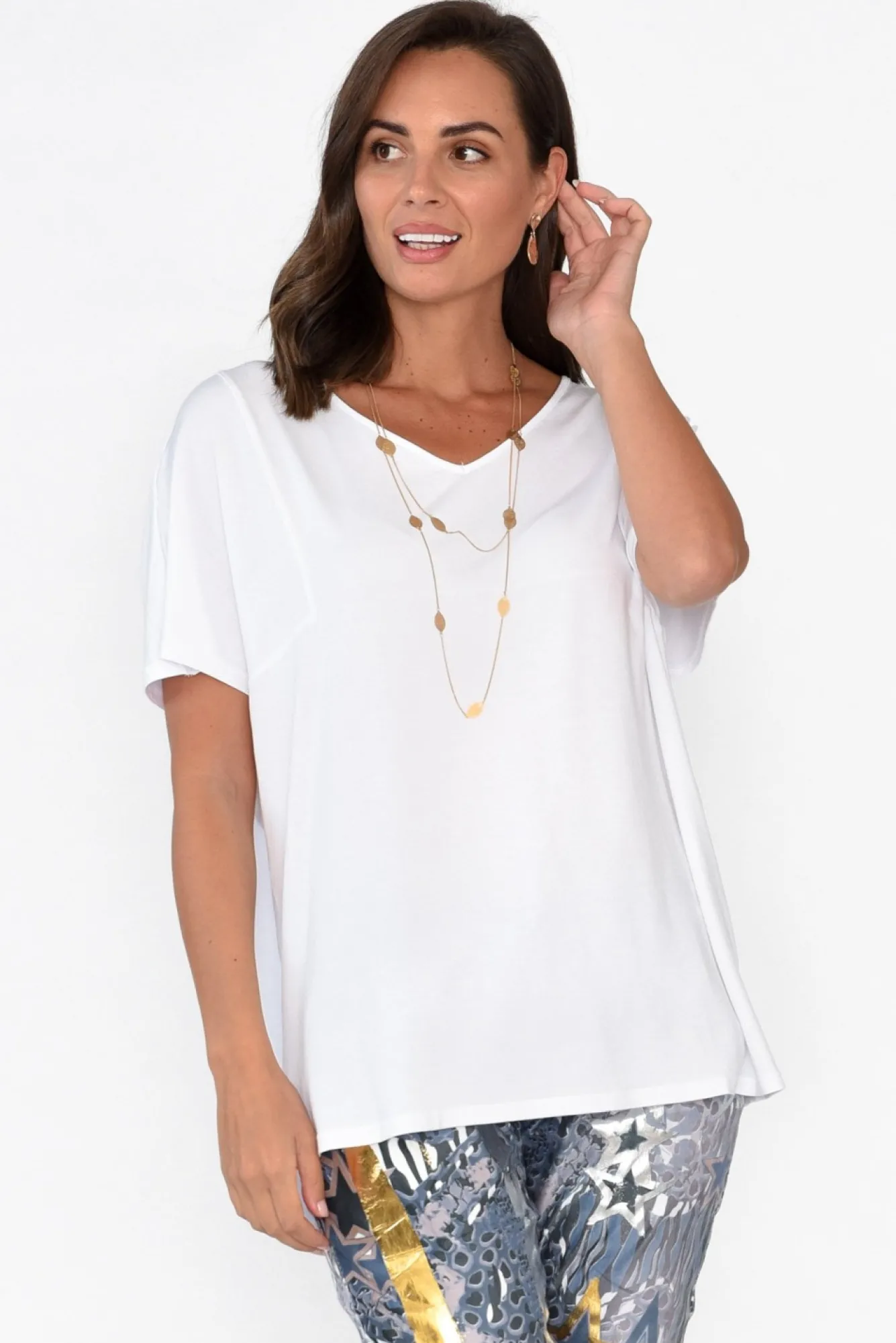 Fit: True To Size. Refer To Size & Fit Tab Below For Specific Size RecommendationNNfabric: 96% Micro Modal, 4% LycraNcrafted From Lightweight, Stretchy And Silky-Soft Micro Modal Fabric With Signature Thermoregulating Properties NNfabric Is Semi Sheer, We Recommend Pairing With Nude UndergarmentsNmade From Sustainably Sourced Beechwood Fibres Nclassic V-Neckline Complements The Short SleevesNNstitching Detail At The Back And At The Front From Shoulder To Bust Nrelaxed Swing SilhouetteNsubtle Hi-Lo Hemline Falls Below The HipsNNcare: Cool Gentle Machine Wash RecommendedNNcolour: Fresh White Shade