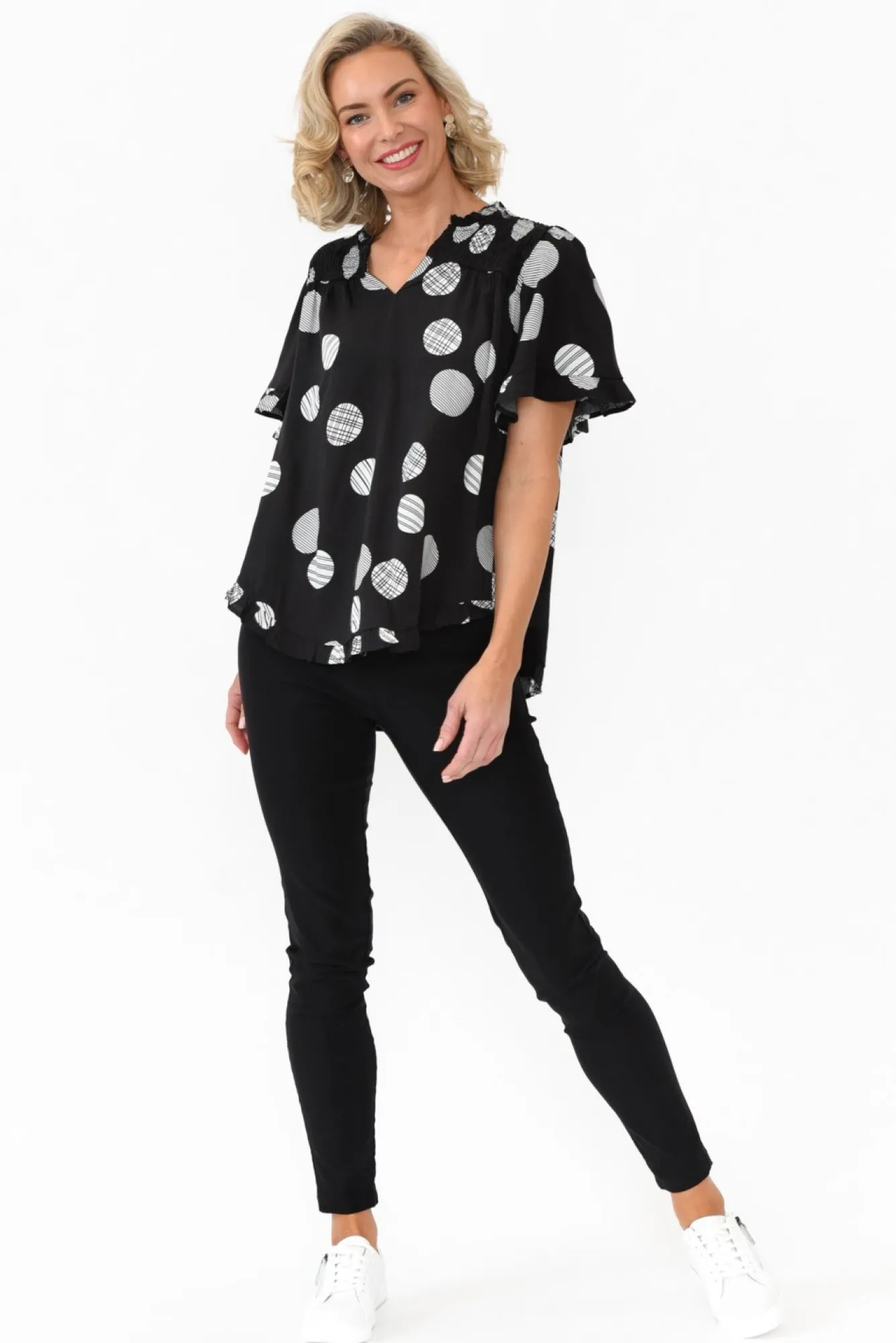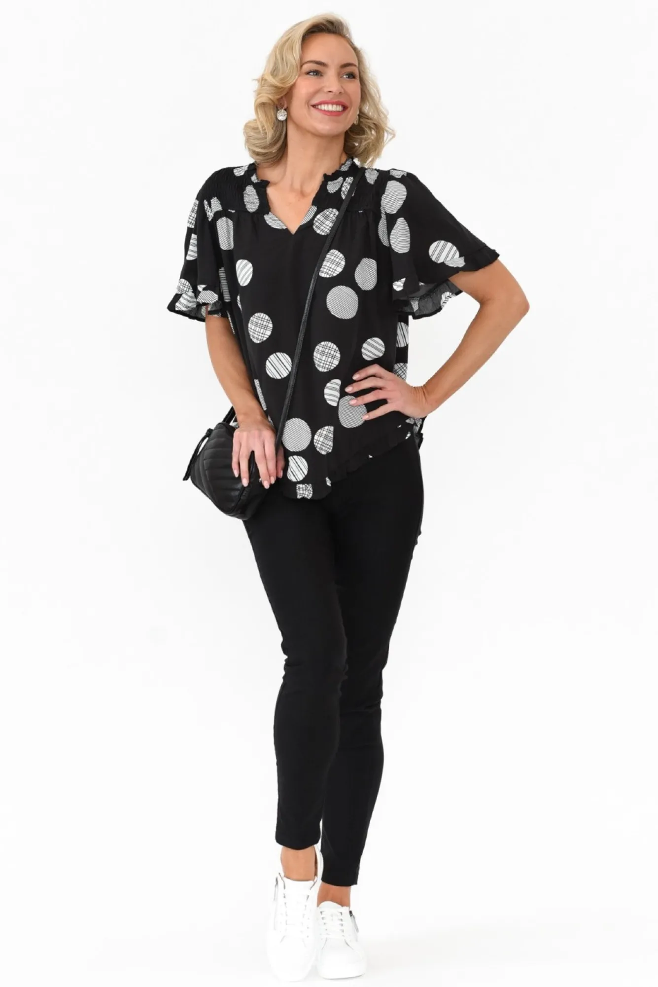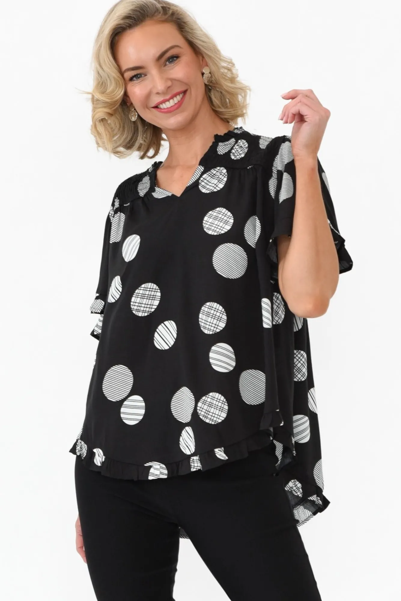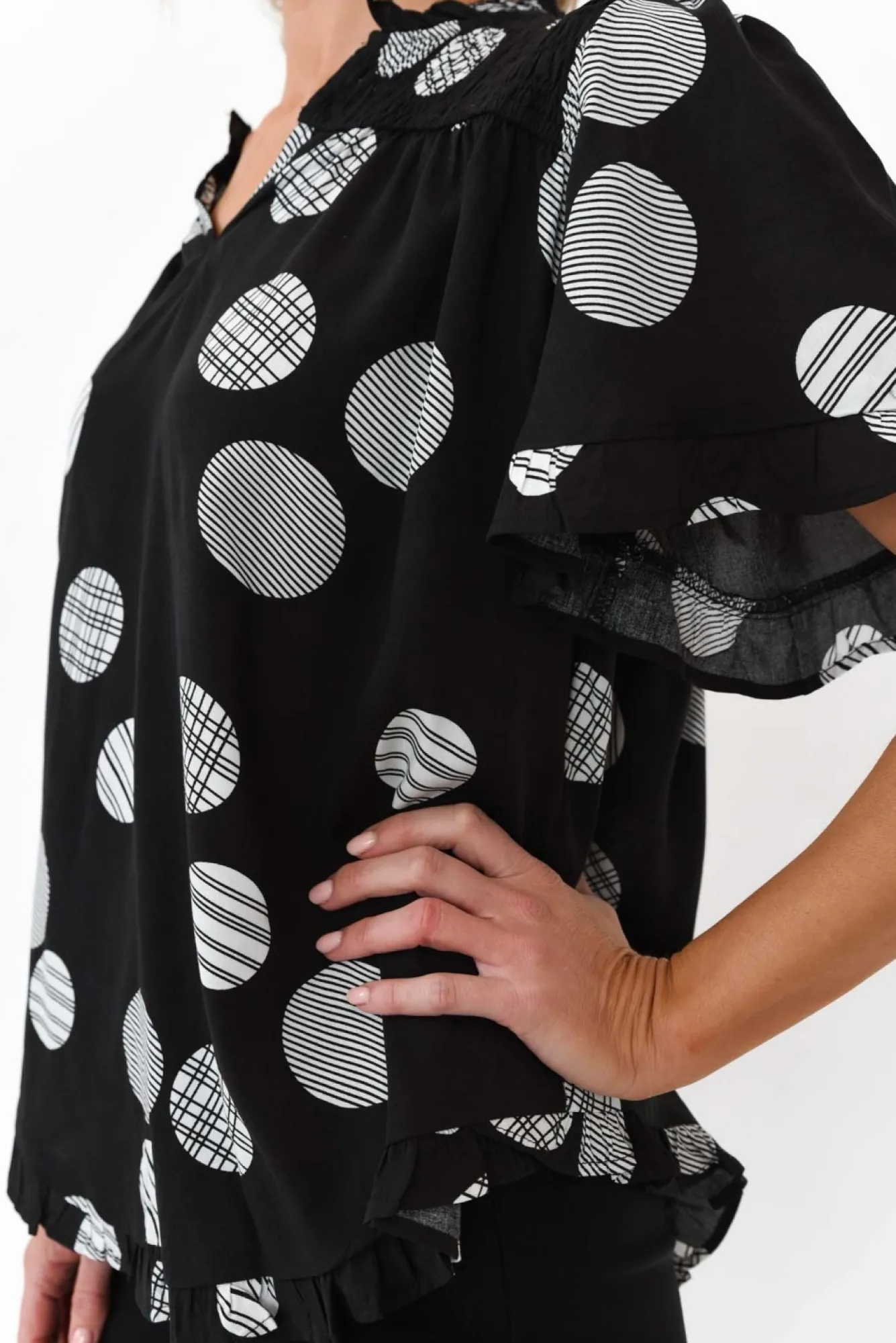 Sleeved Tops<Willow Tree Malika Black Spot Frill Top