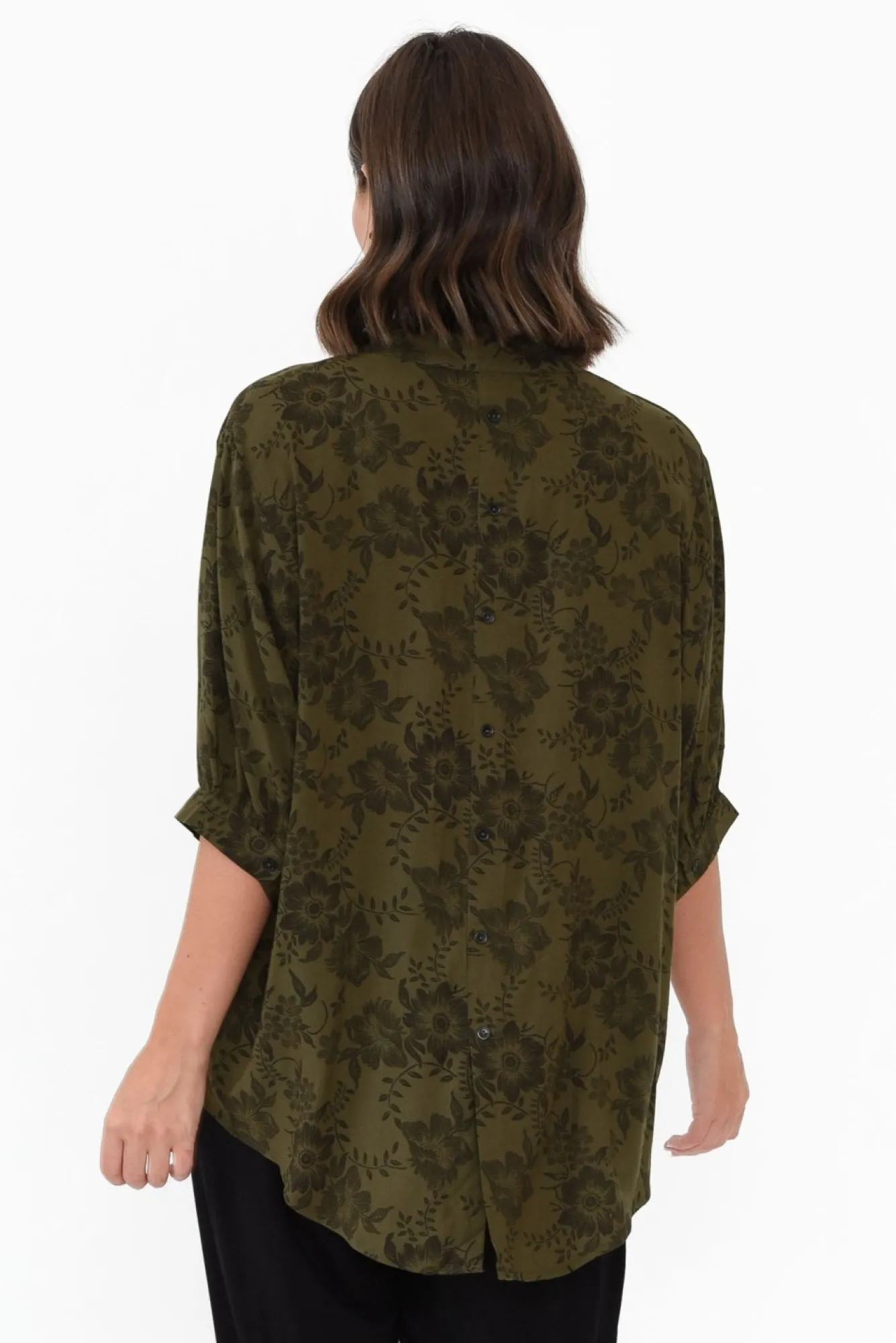 Sleeved Tops<Willow Tree Marsden Khaki Garden Button Top