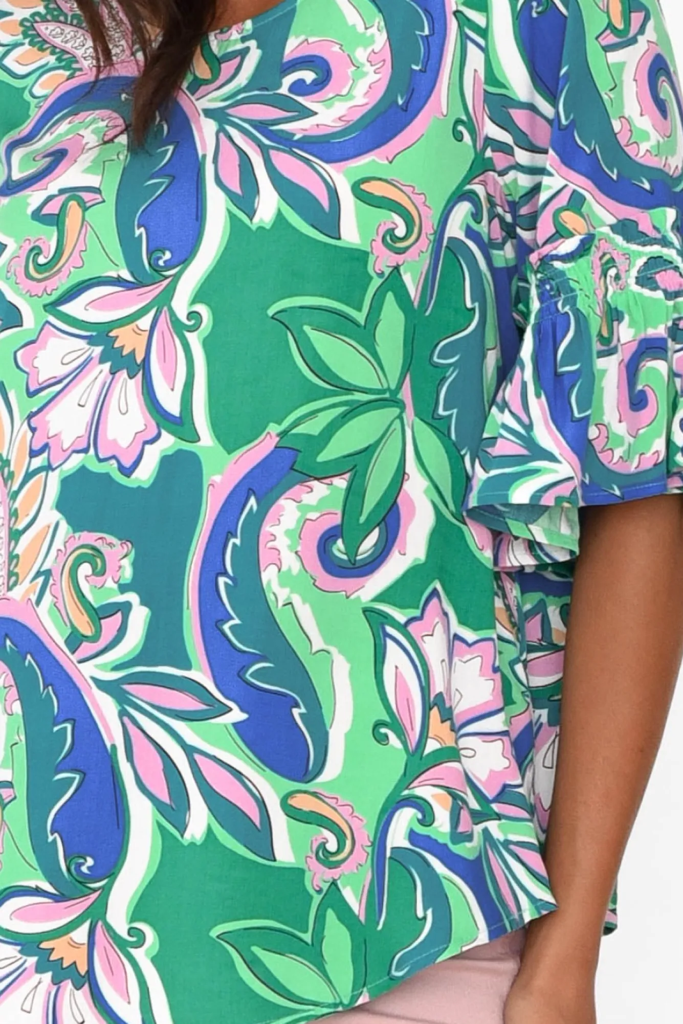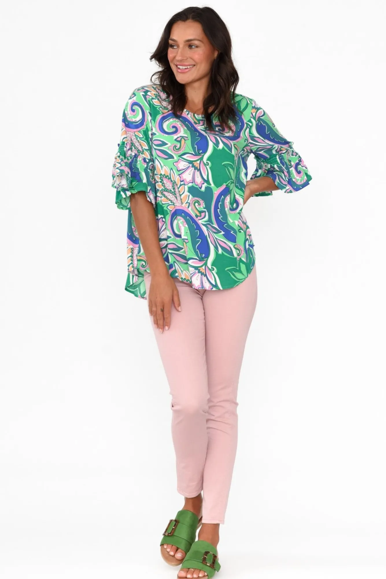 Sleeved Tops<Willow Tree Philomena Green Garden Ruffle Top