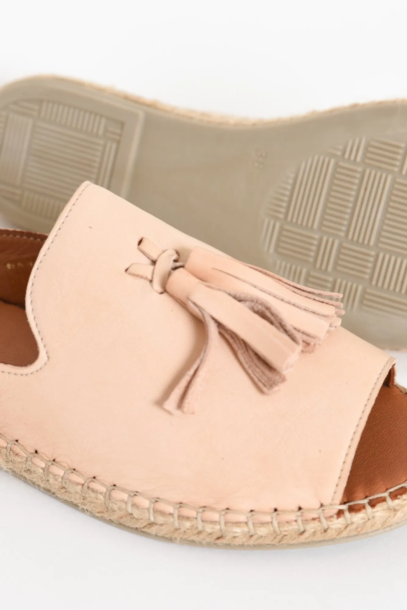 True To Size: Pick The Size You Would Normally WearNfit: Narrow – StandardNthese Leather Tassel Slides Are Incredibly Stylish, Featuring An Oversized Tassel On The Top Paired With A Natural Woven Base!Ndesigned With Quality Turkish LeatherNopen Toe Slide Design With Rounded Toe BedNsoft Leather Upper With Unique Tapered Edge Hugs The Sides Of The FootNlarge Tassel Features On The Upper Adds Detail And DimensionNtan Inner Sole With Natural Woven Trim And Visible Stitching For A Laid-Back Casual FeelNscored Rubber-Like Sole Increases Non-Slip CapabilityNupper: LeatherNlining: LeatherNfootbed: LeatherNsole: ManmadeNNheel Height: 1.5CmNcolour: Blush Nude ShadeNNshoe Care: We Recommend A Leather Protector Before Use. To Clean Use A Damp Cloth And Spot Clean