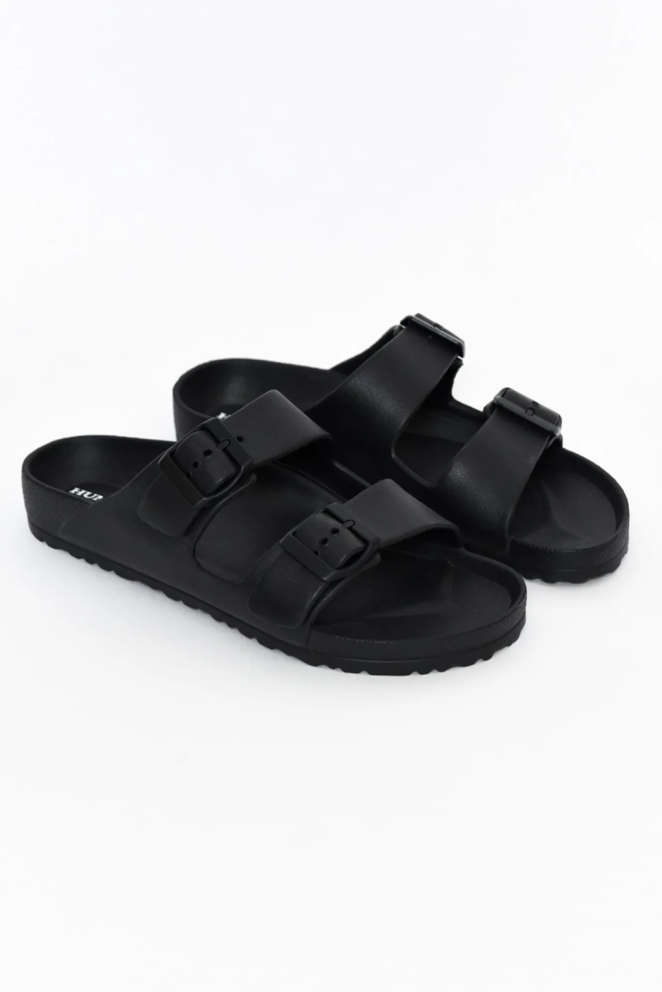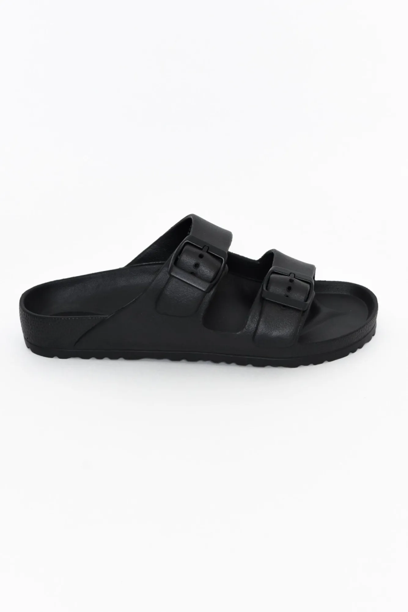 True To Size: Pick The Size You Would Normally Buy NN Fit: Standard – Wide Nan Easy-To-Wear Slip-On Slide Perfect For Days At The Beach Or Everyday Wear Nadjustable Double Buckle Design For The Perfect Fit Ndurable, Water And Weather Resistant Design Nflexible, Ultra-Lightweight Style, Making It Perfect For Travel Nfeaturing A Cushioned-Feel Sole With Support At The Arch Ngrooved Non-Slip Sole NNupper: EvaNNlining: EvaNsole: EvaNheel Height: 1.2CmNcolour: Midnight BlackNshoe Care: Wipe With A Damp Cloth