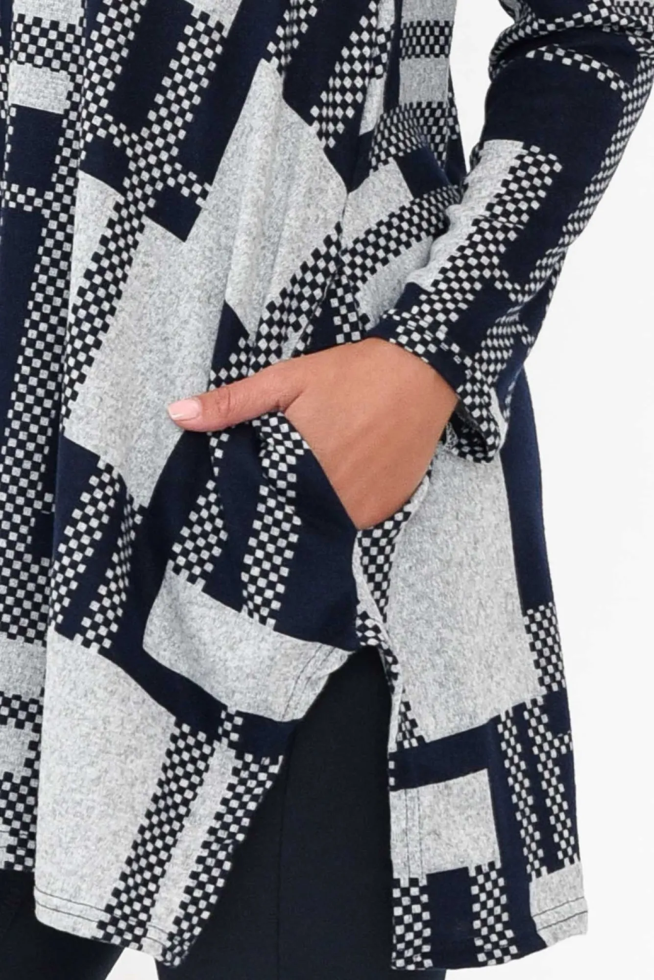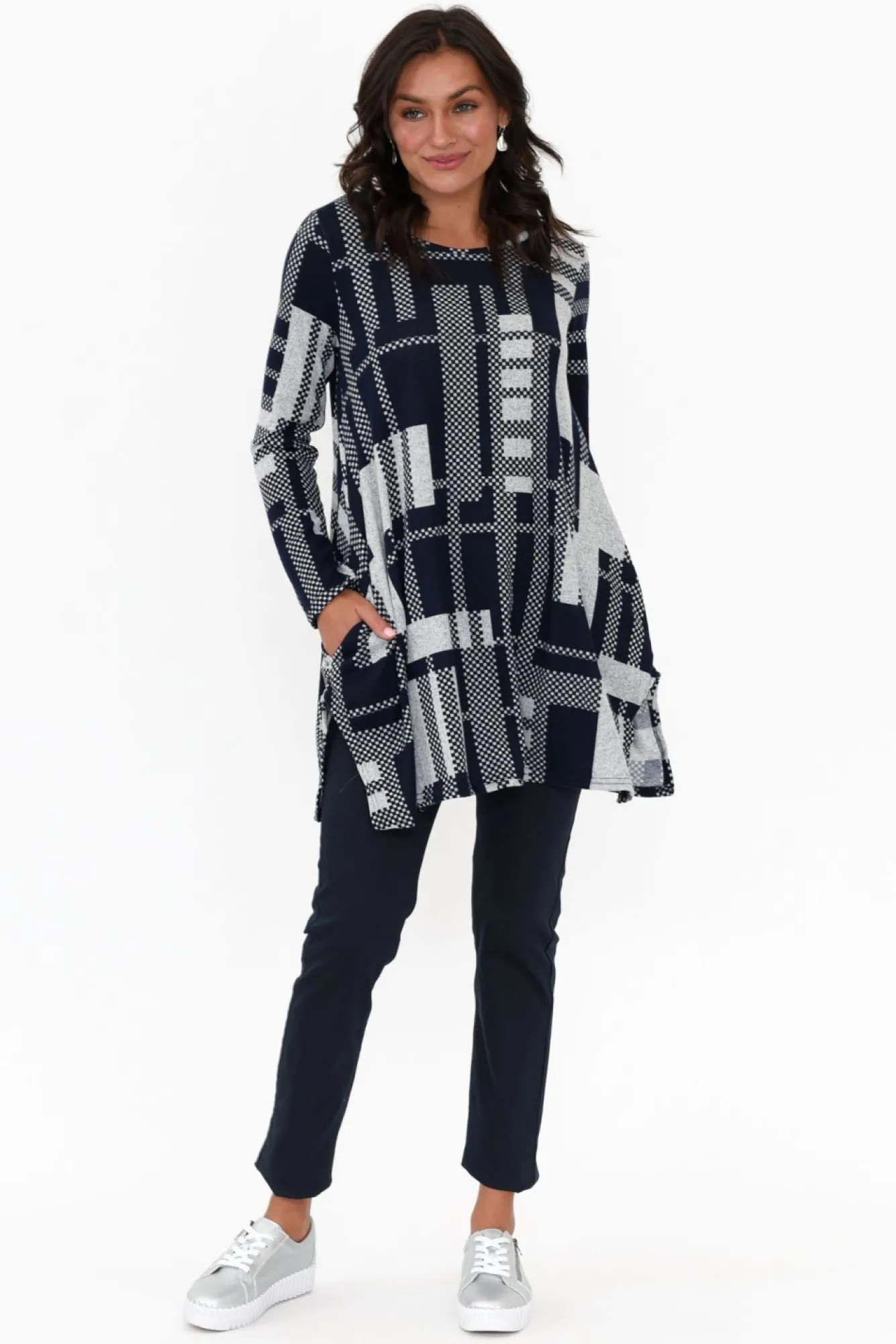 Fit: True To Size. Refer To Size & Fit Tab Below For Specific Size RecommendationNNfabric: 65% Polyester, 35% CottonNNa Lightweight Knitted Tunic Top Designed With Ultra-Soft Hand Feel And Subtle StretchNNversatile Round Neckline Complements The Full-Length Sleeves Ntranseasonal A-Line Silhouette With Signature Flaring At The Hips NNtwo Hip Pockets Located In Side Seams NNstraight Hemline Falls Below Hip Length Nfeaturing Side Splits For Ease Of Movement NNcare: Cool Gentle Hand Wash RecommendedNNcolour: Abstract Check Print In Shades Of Navy And White