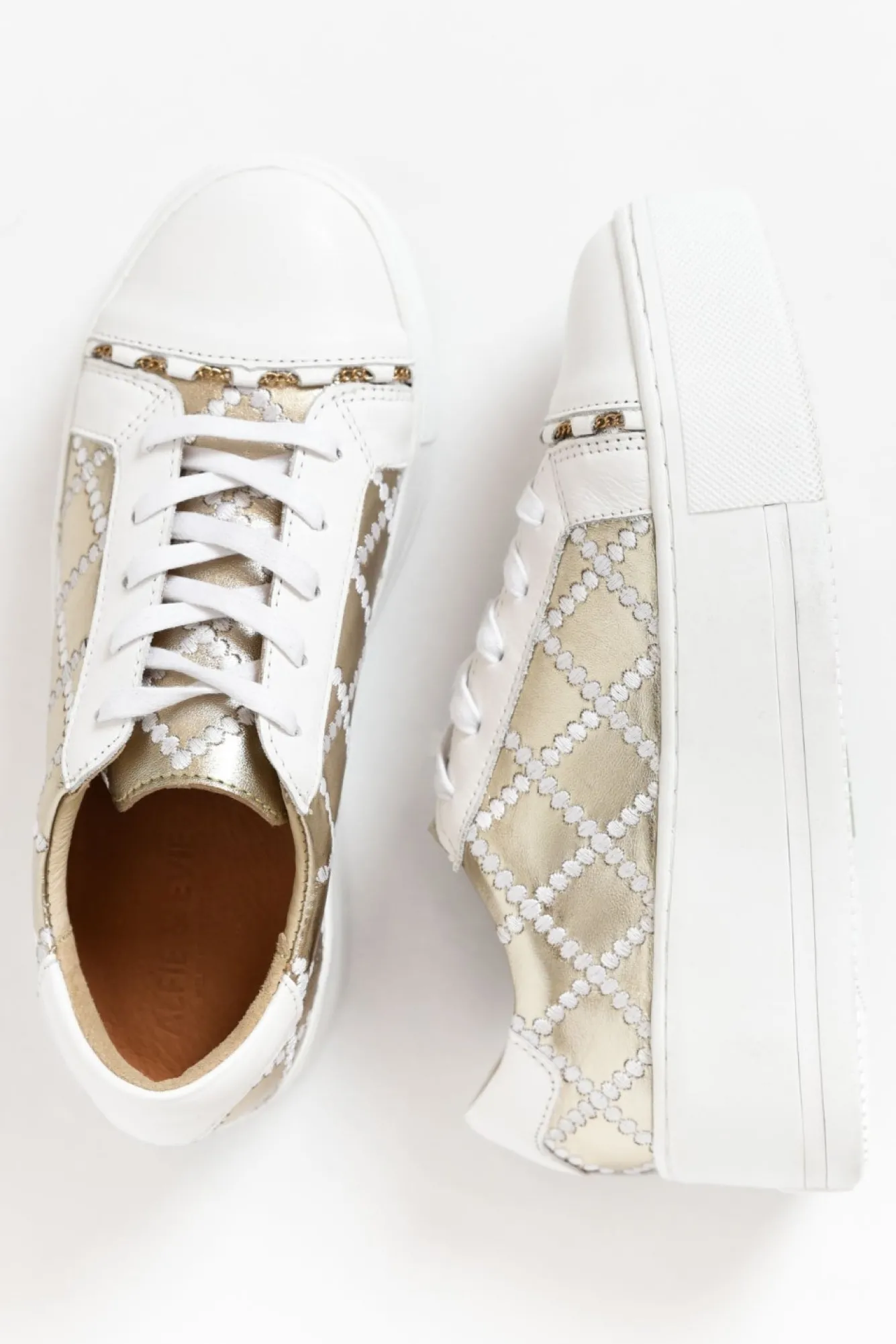 White Sneakers<Alfie and Evie Frankie Gold Leather Platform Sneaker