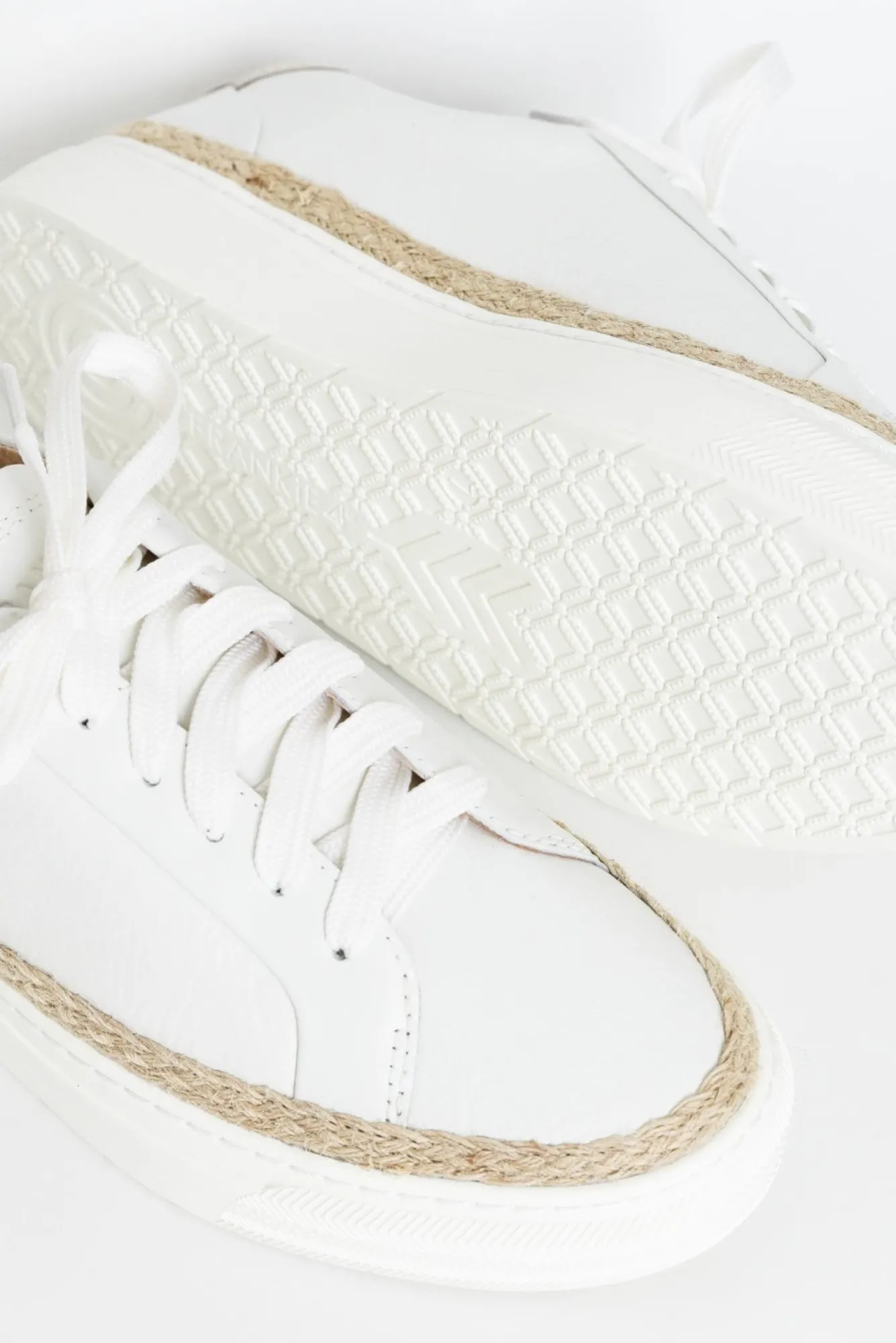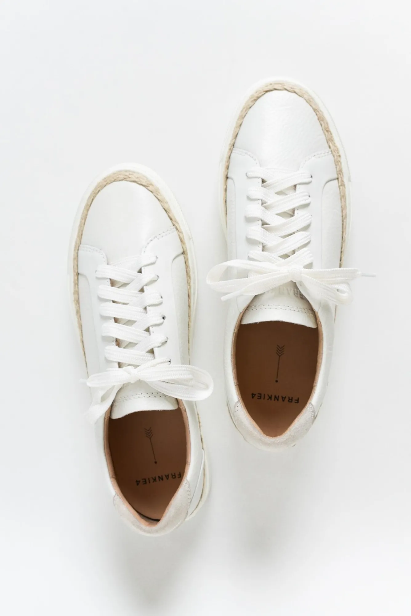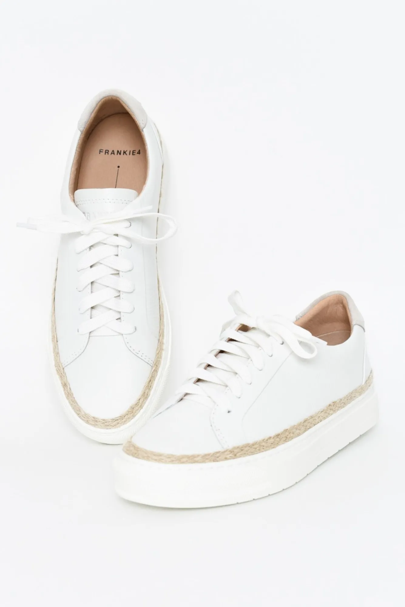 True To Size: Pick The Size You Would Normally Buy NNN Fit: Narrow – Wide. Create A Tailored Fit With The Sole Saver Pack™NNclassic White Sneaker Featuring Premium Comfort Features From Frankie4Nremovable, Podiatrist-Designed Sole Hero™ Support Footbed Can Be Swapped For Orthotics Or Narrow And Wide Settings From The Sole Saver Pack™NNreinforced Rubber Toe Box For Durability With Extra Cushioning On The Inside Of The TongueNwhite Lace-Up Design Complements The Taupe Suede Heel DetailNplatform White Base With A Braided Rope Feature And A Grooved Sole For Slip PreventionNsmall Frankie4 Raised Embellishment On The Back Of The HeelNNupper: LeatherNNlining: LeatherNsole: Man-MadeNheel Height: 3Cm NNshoe Care: Use A Water And Stain-Repellent Spray To Protect Before Wearing. To Clean Use A Damp Cloth And Spot Clean.