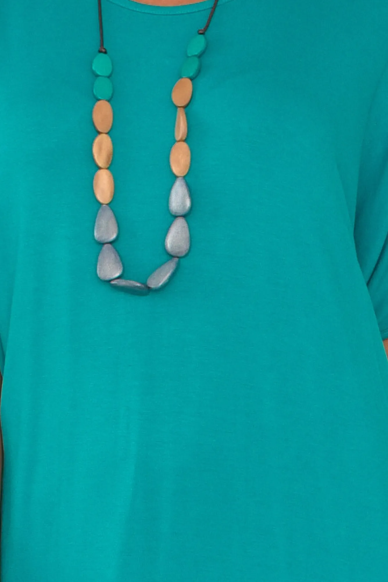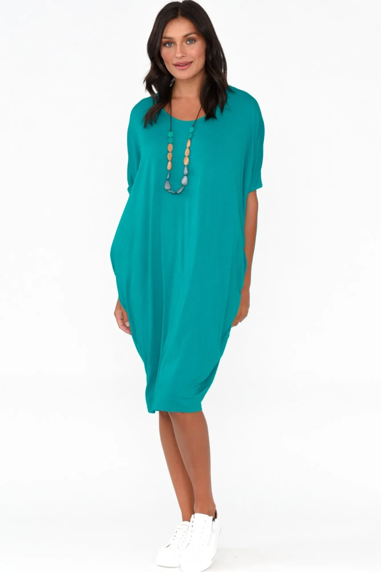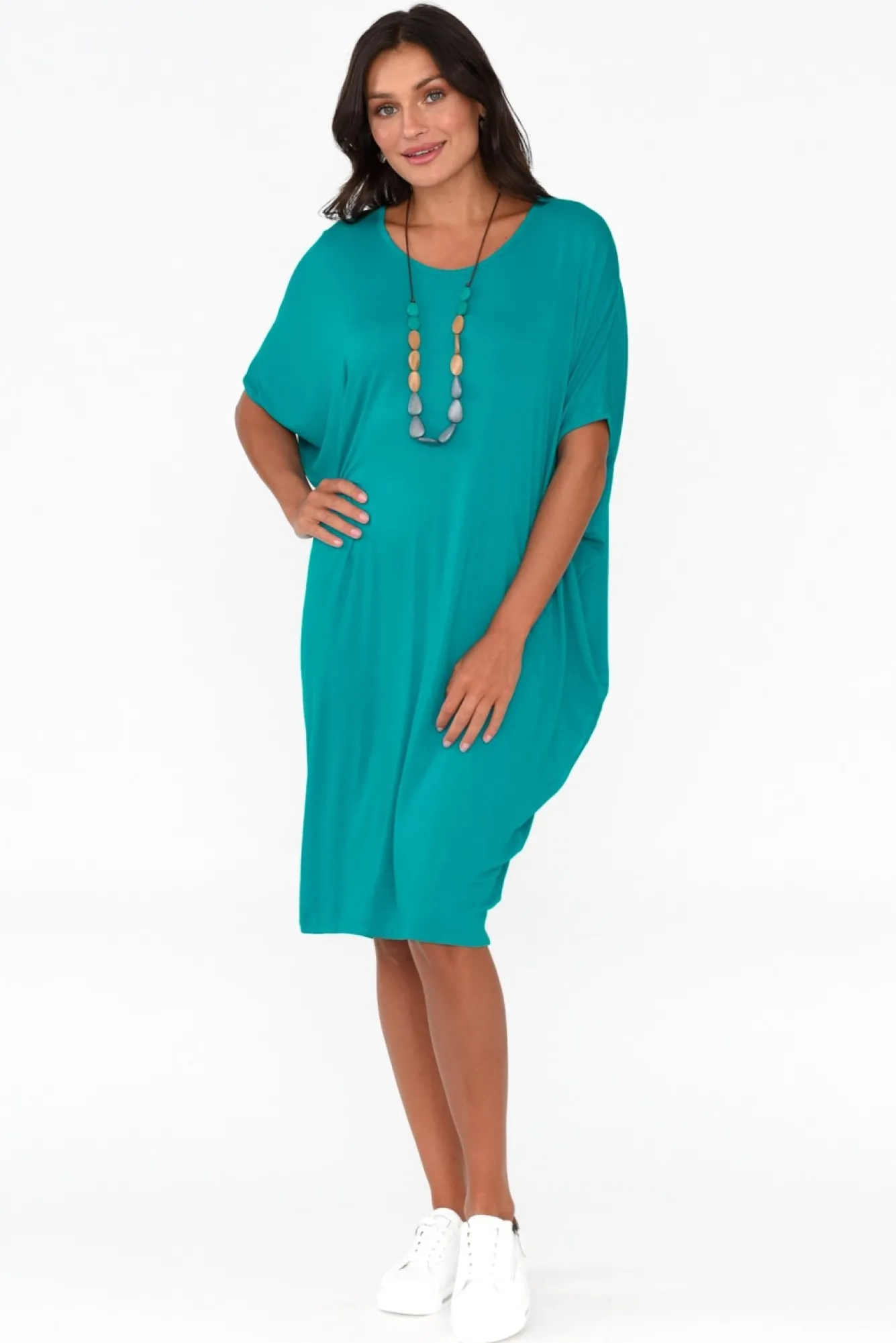 Fit: Oversized. Refer To Size & Fit Tab Below For Specific Size RecommendationNNfabric: Viscose/ElastaneNa Lightweight And Comfortable Drape Dress Made From Soft And Stretchy FabricNwide Round Neckline With Elevated Batwing Sleeves Nrelaxed Silhouette Drapes Through The Torso And Tapers At The HemNknee-Length Straight Hemline NNNcare: Cool Gentle Hand Wash RecommendedNNNcolour: Lovely Teal Blue