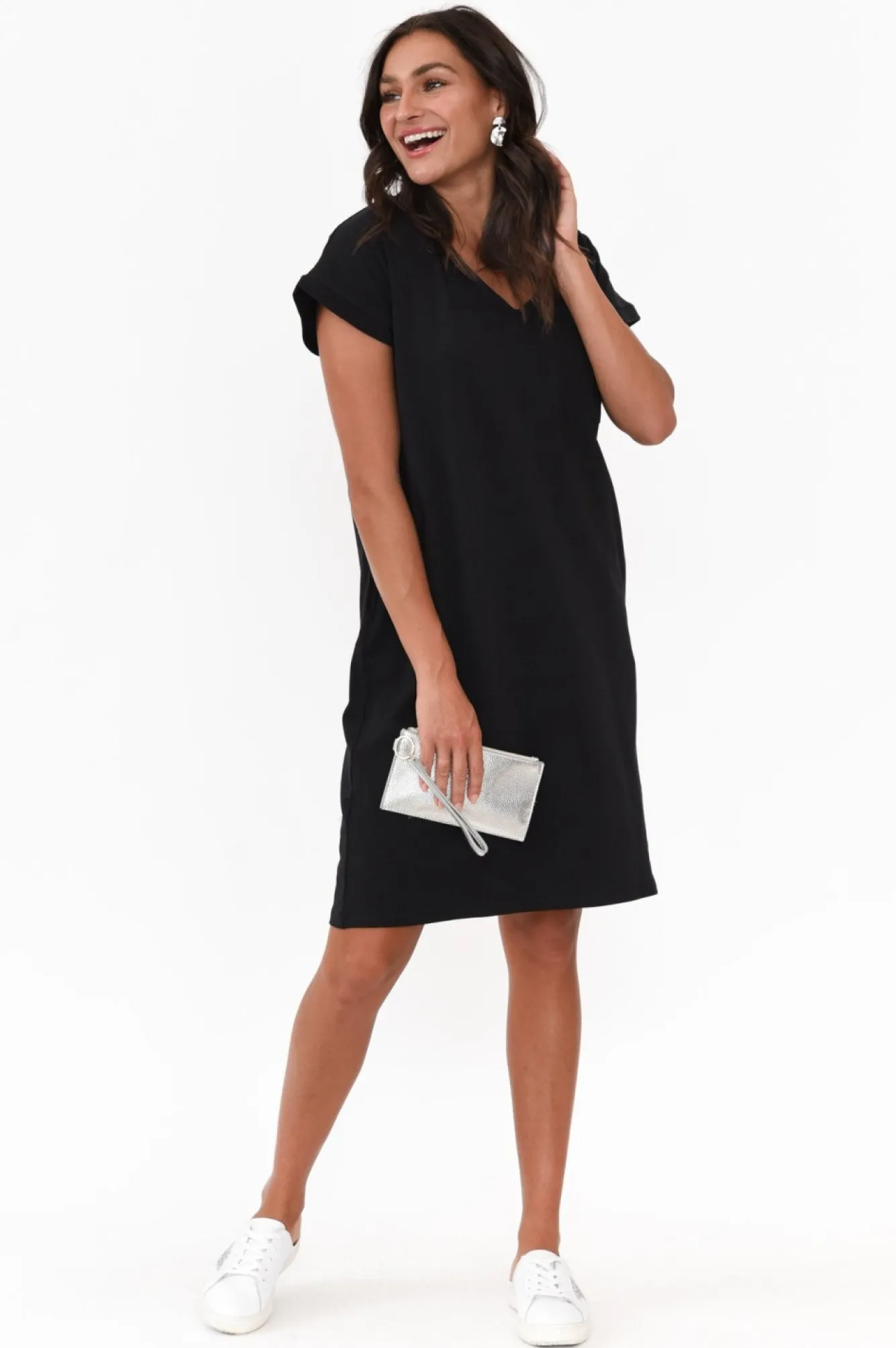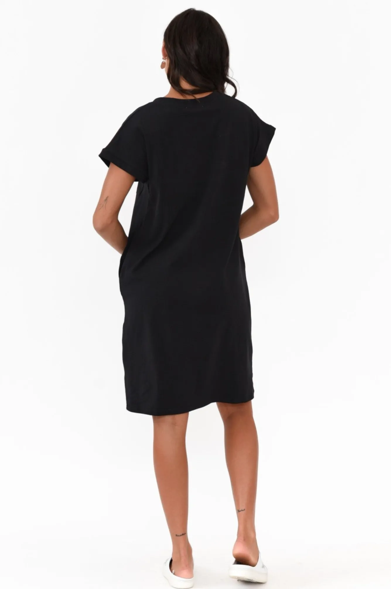 Fit: True To Size. Refer To Size & Fit Tab Below For Specific Size Recommendation NNfabric: Cotton/ElastaneNultra-Soft And Stretchy Cotton Blend Dress With A Lovely Breathable And Midweight FeelNsimple V Neckline And Short Sleeves Neveryday Classic Straight Tee SilhouetteNNtwo Handy Side Hip PocketsNNknee-Length Dress With A Straight HemlineNNNcare: Cool Gentle Machine Wash RecommendedNNcolour: Timeless Black ShadeNNnote: Length Measurement Slightly Varies Between Colourways, Please Consult The Appropriate Size Chart.