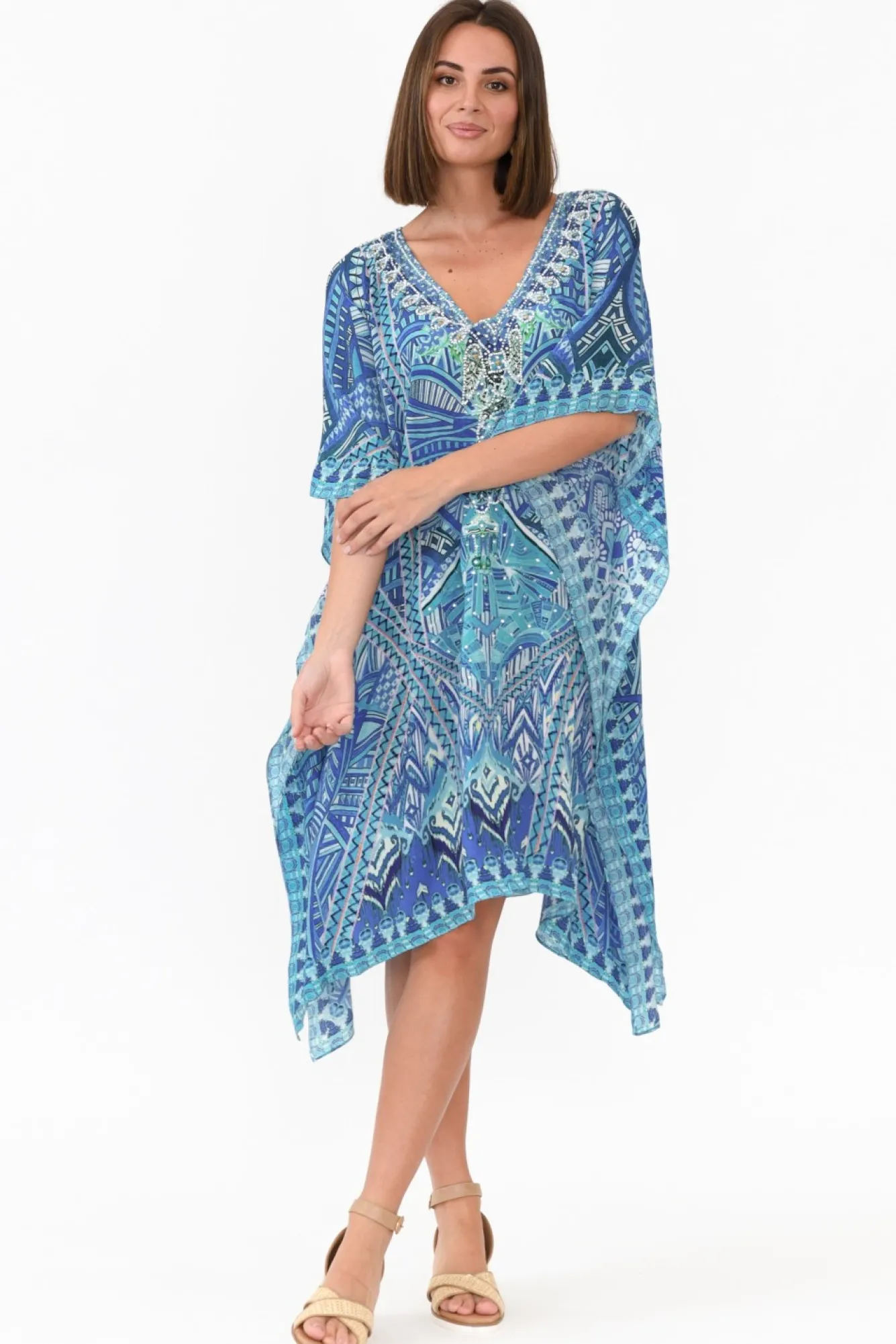 Above Knee Dresses<Fashion Spectrum Emen Blue Silk Kaftan