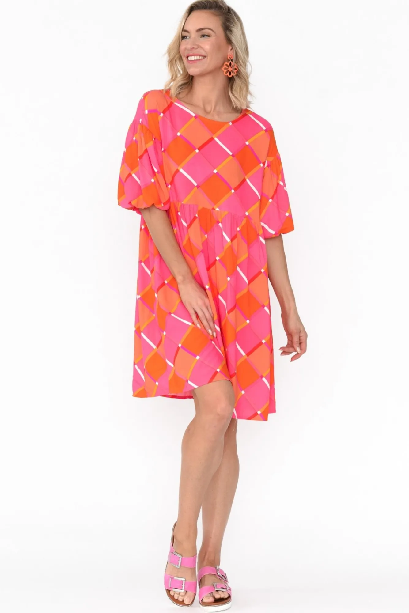 Above Knee Dresses<Label Of Love Kylo Pink Geometric Dress