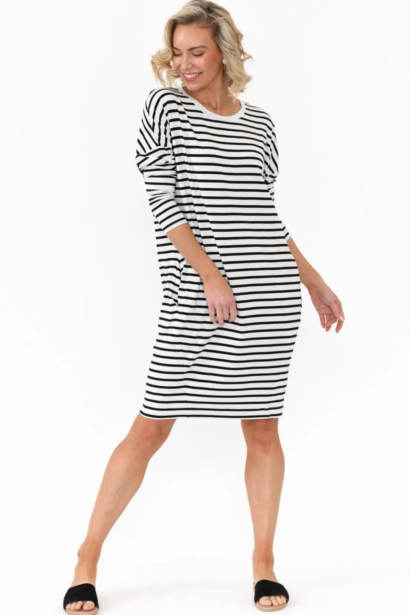 Fit: True To Size. Refer To Size & Fit Tab Below For Specific Size RecommendationNNfabric: 93% Bamboo 7% ElastaneNthis Midweight Bamboo Dress Boasts A Soft And Stretchy Hand Feel, Providing A Comfortable And Breathable FitNclassic Round NecklineNfull-Length Sleeves Featuring Drop Shoulder Seam For Ease Of Movement Neveryday Balloon Silhouette Enhanced By Tapered Seam Detail NNtwo Hip Pockets Concealed In Feature Seams Nfalls To Knee Length NNNcare: Cool Gentle Machine Wash RecommendedNNcolour: Soft Grey Marle And Black Stripes