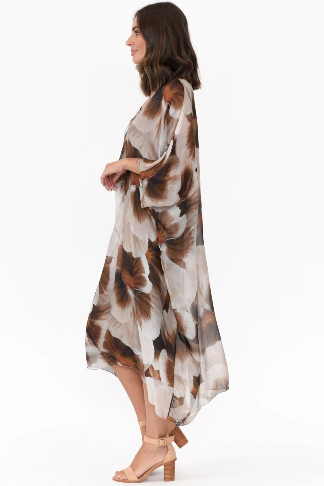 Fit: True To Size. Refer To Size & Fit Tab Below For Specific Size RecommendationNNfabric: Outer: 70% Viscose 30% Silk Lining: 95% Viscose 5% ElastaneNa Head-Turning Event Style Crafted In Italy From Stunning Sheer Silk Blend Fabric With An Ultra-Comfortable And Stretchy Lining NNsimple Wide Round Neckline NNstatement Batwing Sleeves Cascade Down The Arms NNdreamy Drape Silhouette With A Stretchy Lining For Additional Coverage Nasymmetric HemlineNfalls Below Knee Length NNcare: Cool Gentle Hand Wash RecommendedNNcolour: Taupe Base With Lush Brown Floral Print