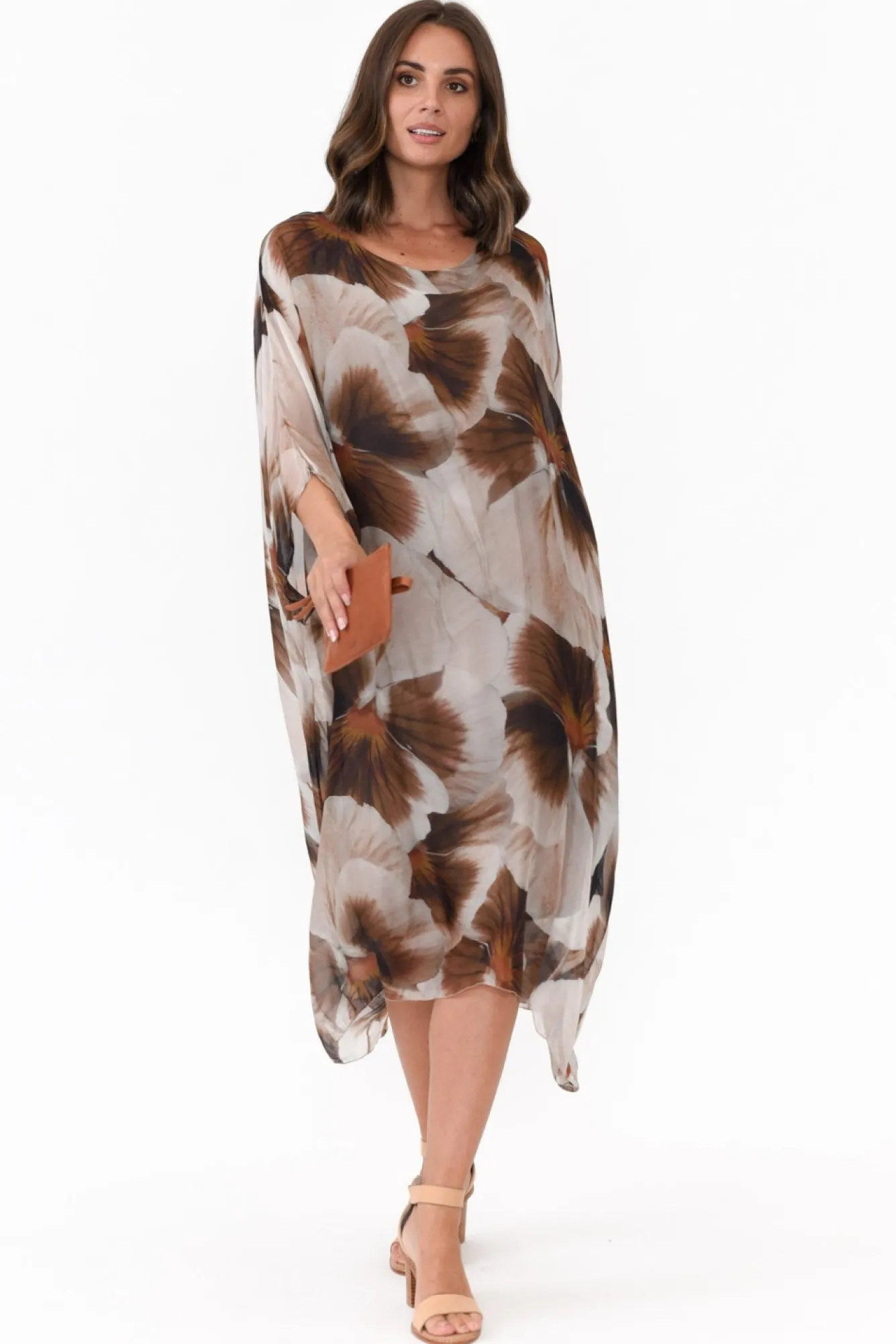 Below Knee Dresses<Italian Closet Santiago Brown Garden Silk Layer Dress
