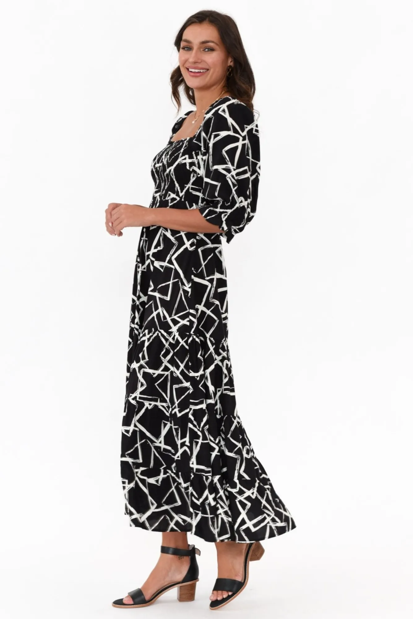 Below Knee Dresses<Silver Wishes Jonathan Black Geo Shirred Maxi Dress