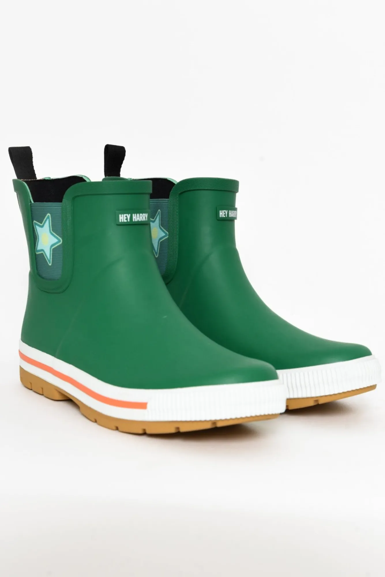 True To Size: Pick The Size You Would Normally BuyNNfit: Standard – WideNkeep Your Feet Stylist And Away From Water With These Fun Ankle Gumboots! Npull-On Design Featuring Elasticated Sides Nprinted Stars Featured On The Heel And Ankles For A Fun LookNNwaterproof Design Makes These Perfect Rainy Days Nsoft Fabric Lining To Keep Your Feet Warm Nremoveable In-Sole Can Be Swapped Out For Orthotics NNbase Features Orange Contrast Piping Detail With A Chunky Embossed Sole To Prevent Slipping Nupper: RubberNsole: RubberNcolour: Deep Green With Orange Accents Nheel Height: 2.5Cm