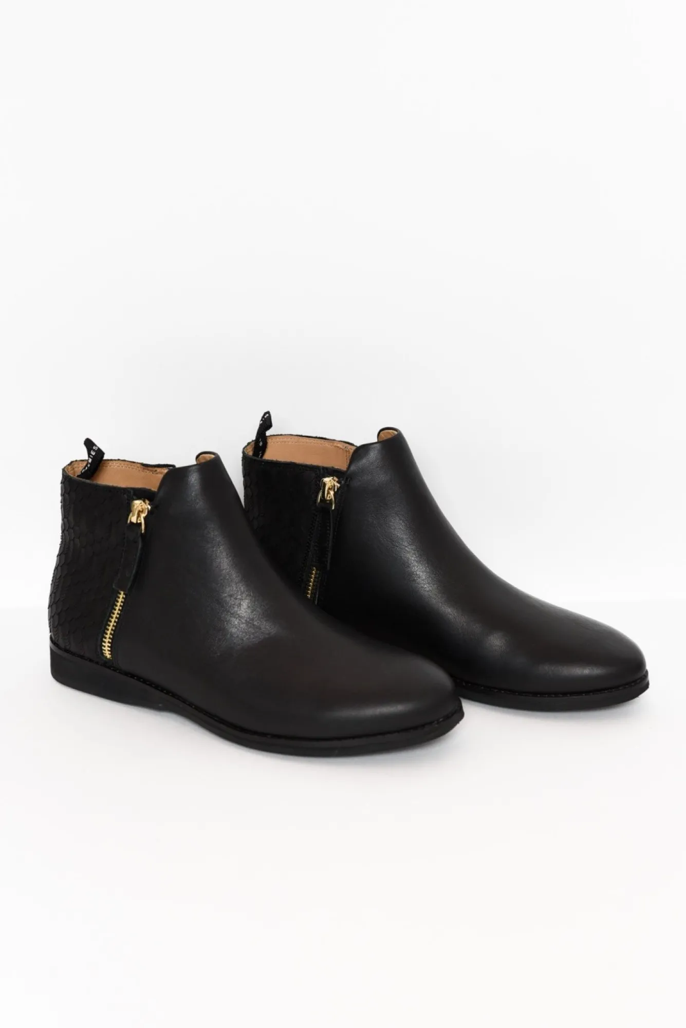 True To Size: Pick The Size You Would Normally Buy NN Fit: Standard – WideNaccessorise With Ease This Season In This Ultra-Comfortable, Soft Leather Ankle BootNfeaturing A Round Toe Box, Slight Heel And Feature Geometric Texture On Back Nclassic Black ShadeNinner And Outer Gold Hardware Zippers For Ease Of Wear And Internal Pull Tab At BackNremovable, Cushioned Insoles – Swap In Your Own Insoles For Optimised ComfortNdesigned With An Anti-Slip Patterned Rubber SoleNupper: LeatherNNlining: Leather & Man MadeNNoutsole: Man MadeNheel Height: 2Cm NNshoe Care: Use A Water And Stain Repellent Spray To Protect Before Wearing. To Clean Use A Damp Cloth And Polish Afterwards.