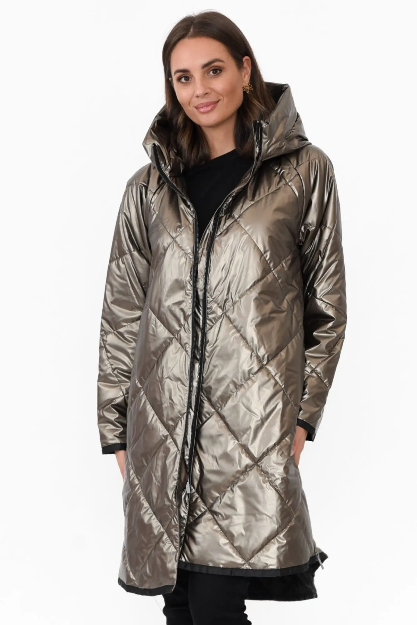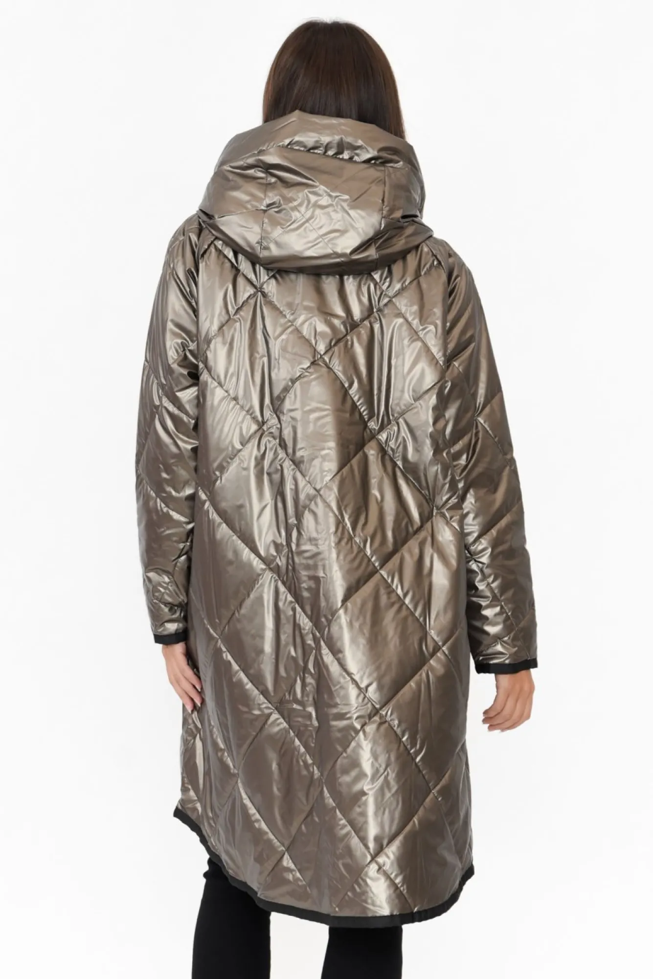 Fit: True To Size. Refer To Size & Fit Tab Below For Specific Size RecommendationNNfabric: Main: 100% Polyester Lining: 100% Polyester Nultra-Cozy And Quilted Midweight Puffer-Style JacketNNpractical Hooded Design Enhanced By Zip Front NNfull-Length Straight Sleeves NNstraight Puffer Coat Design With Stylish Side Zip DetailsNtwo Discreet Hip Pockets Nhi-Lo Hemline Falls To Comfortable Knee Length NNNcare: Dry Clean OnlyNNcolour: Eye-Catching Bronze Shade With A Silver Undertone