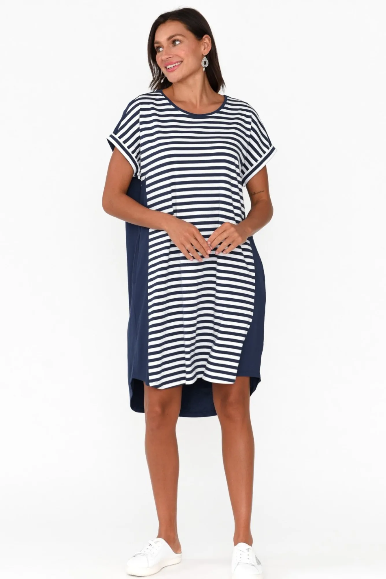 Above Knee Dresses<One Ten Willow Mandy Navy Pinstripe Cotton Tee Dress