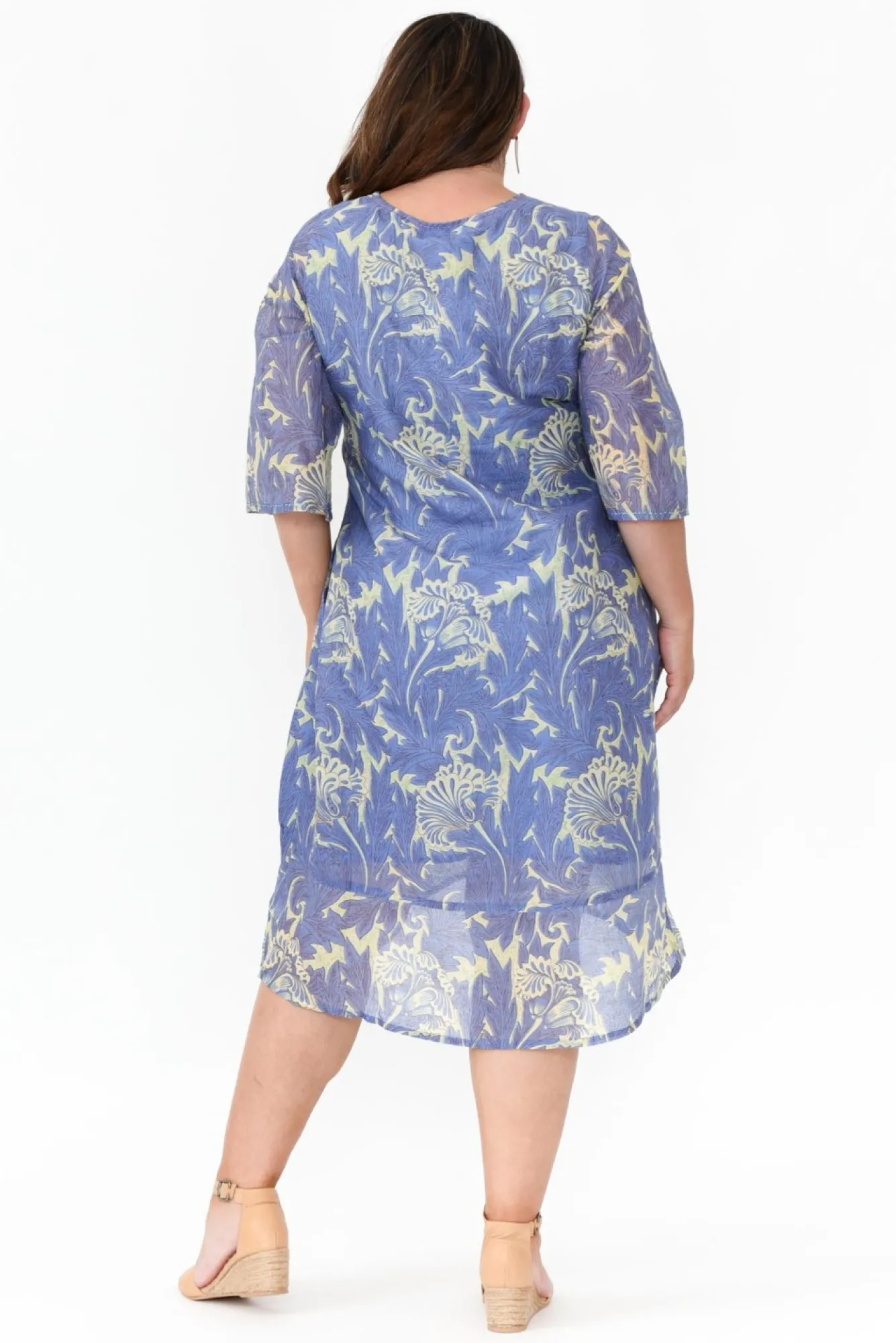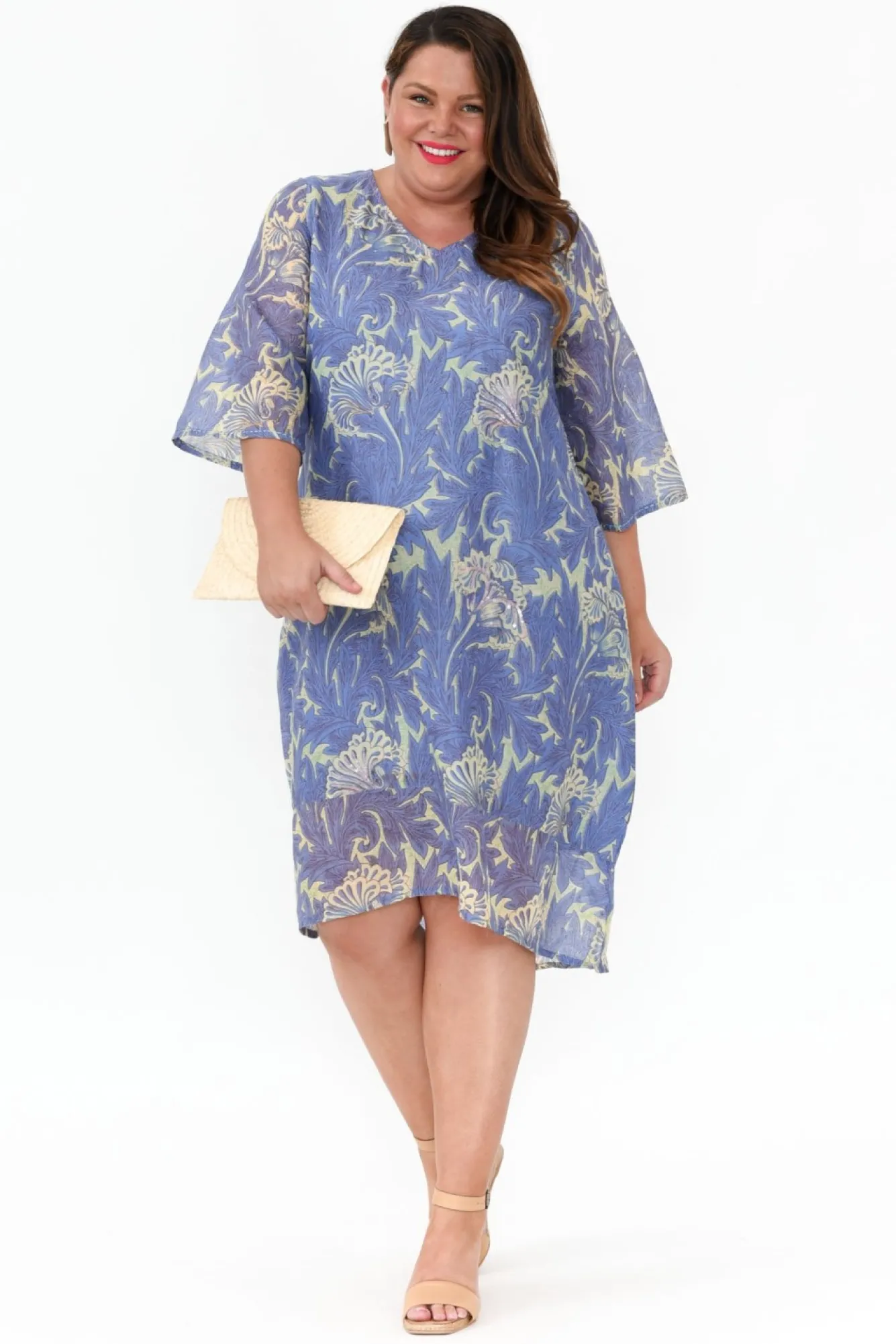 Fit: True To Size. Refer To Size & Fit Tab Below For Specific Size Recommendation NNfabric: 100% CottonNthe Perfect Dress To Elevate Your Spring And Summer WardrobeNcrafted From Lovely Lightweight, Breathable And Non-Stretch Fabric NNflattering V-Neckline With Fun Stitching Detail NN3/4 Length Sleeve With Dramatic Wide Cuff NNrelaxed A-Line Silhouette – A Summer Wardrobe Must Have!NNfloral Motif Features Sequin Detail Scattered ThroughoutNtwo Discreet Hip PocketsNfully Lined For Additional Coverage Nfeature Hi-Lo Hemline Falls Below Knee LengthNNNcare: Cool Gentle Hand Wash RecommendedNNcolour: Cornflower Blue Base With Regal Abstract Print