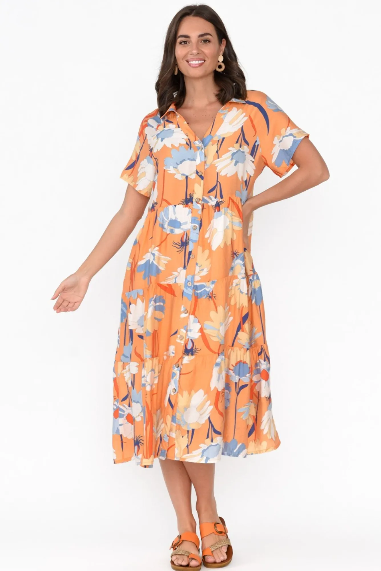 Be the first to review “Cotton Dresses<Cali and Co Maelle Orange Flower Cotton Tier Dress” Cancel reply