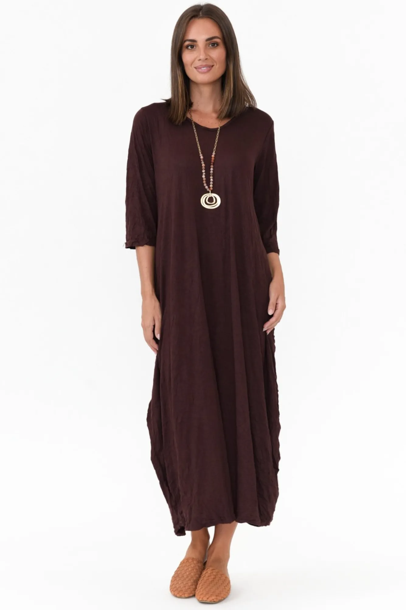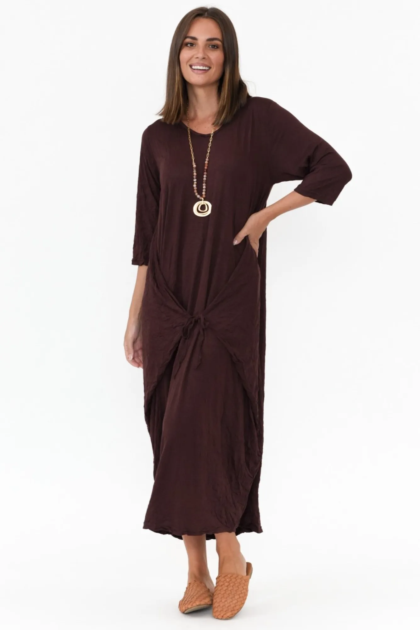 Cotton Dresses<Cotton Village Ellis Chocolate Crinkle Cotton Tie Dress