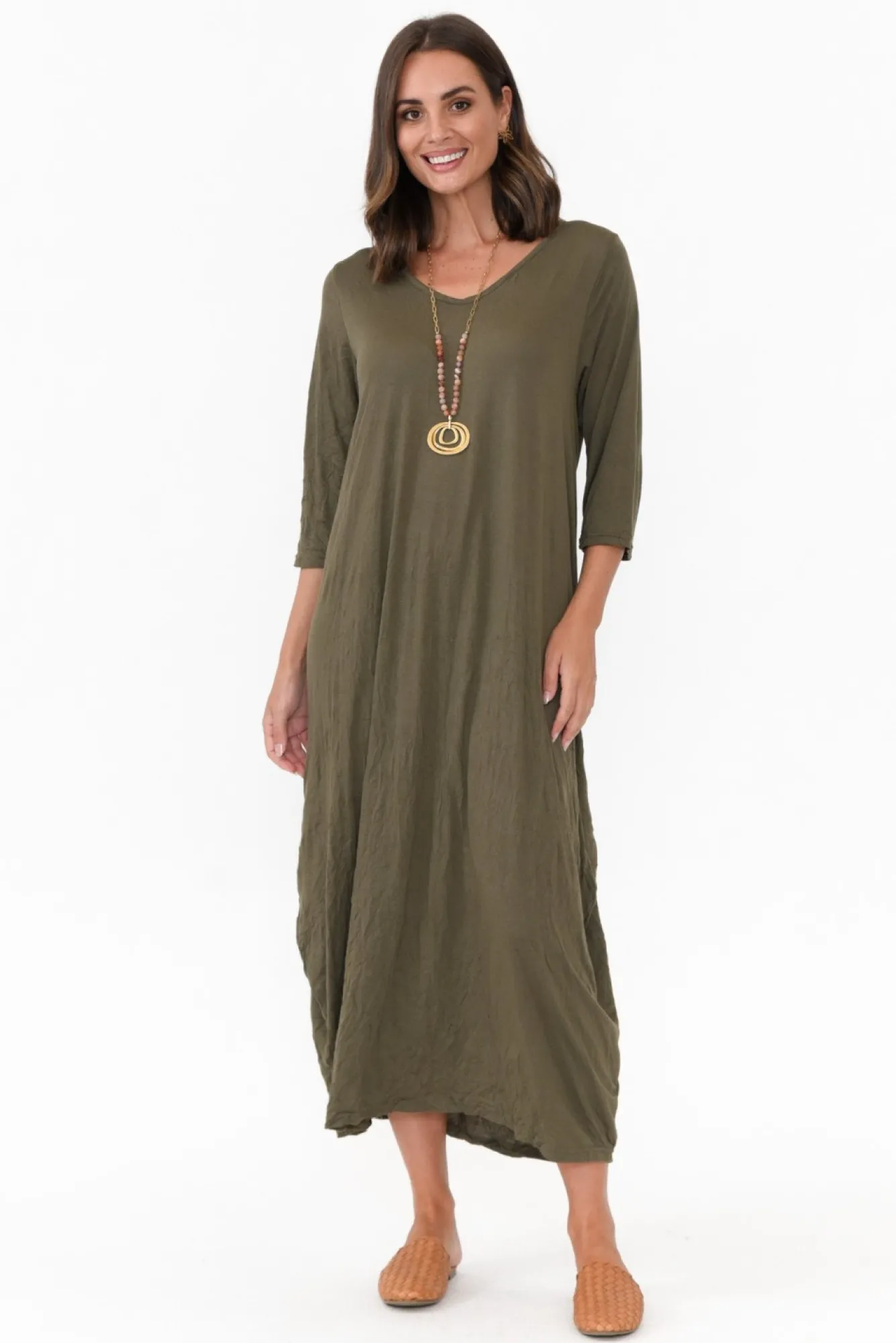 Cotton Dresses<Cotton Village Ellis Khaki Crinkle Cotton Tie Dress