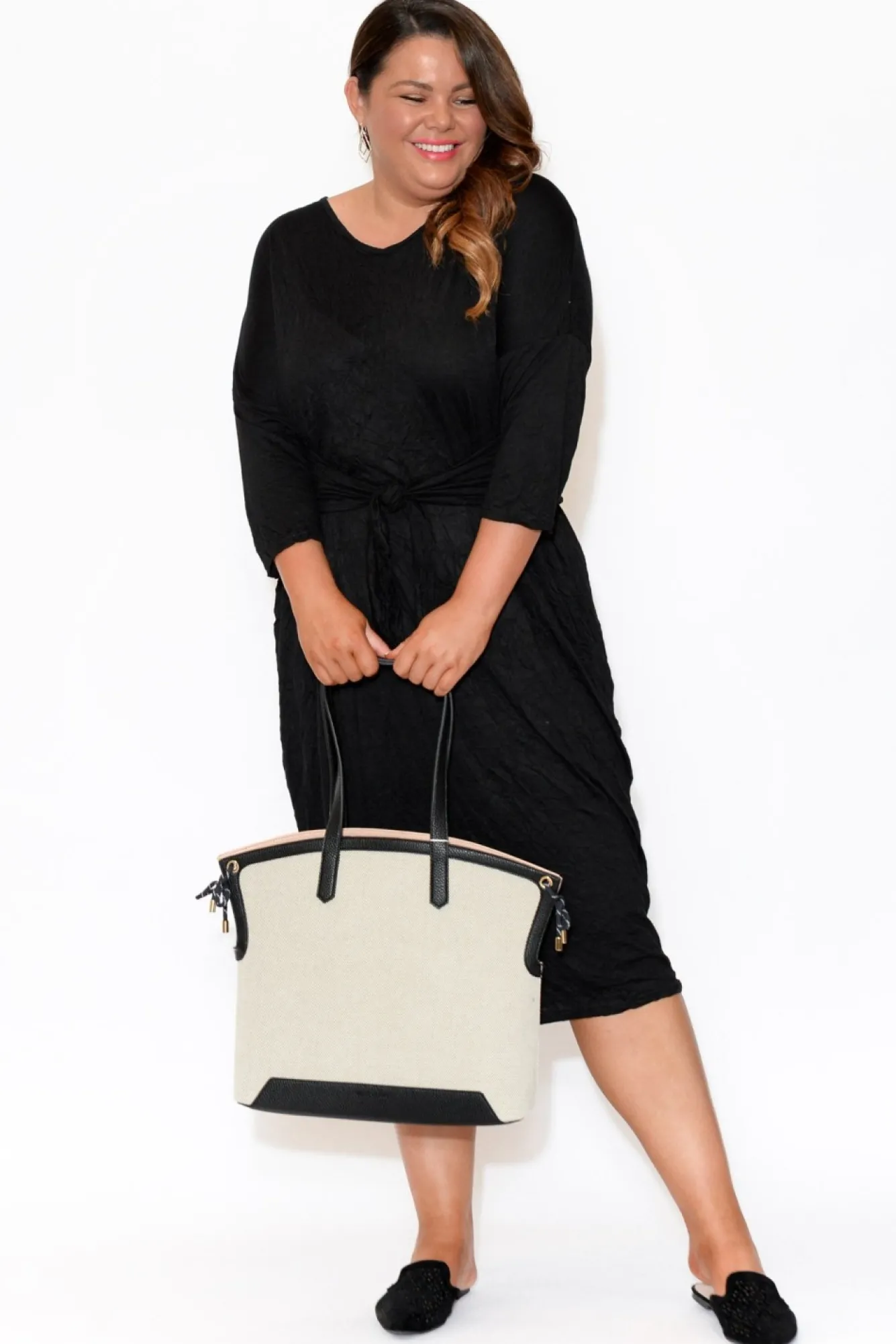Cotton Dresses<Cotton Village Patricia Black Crinkle Cotton Tie Dress