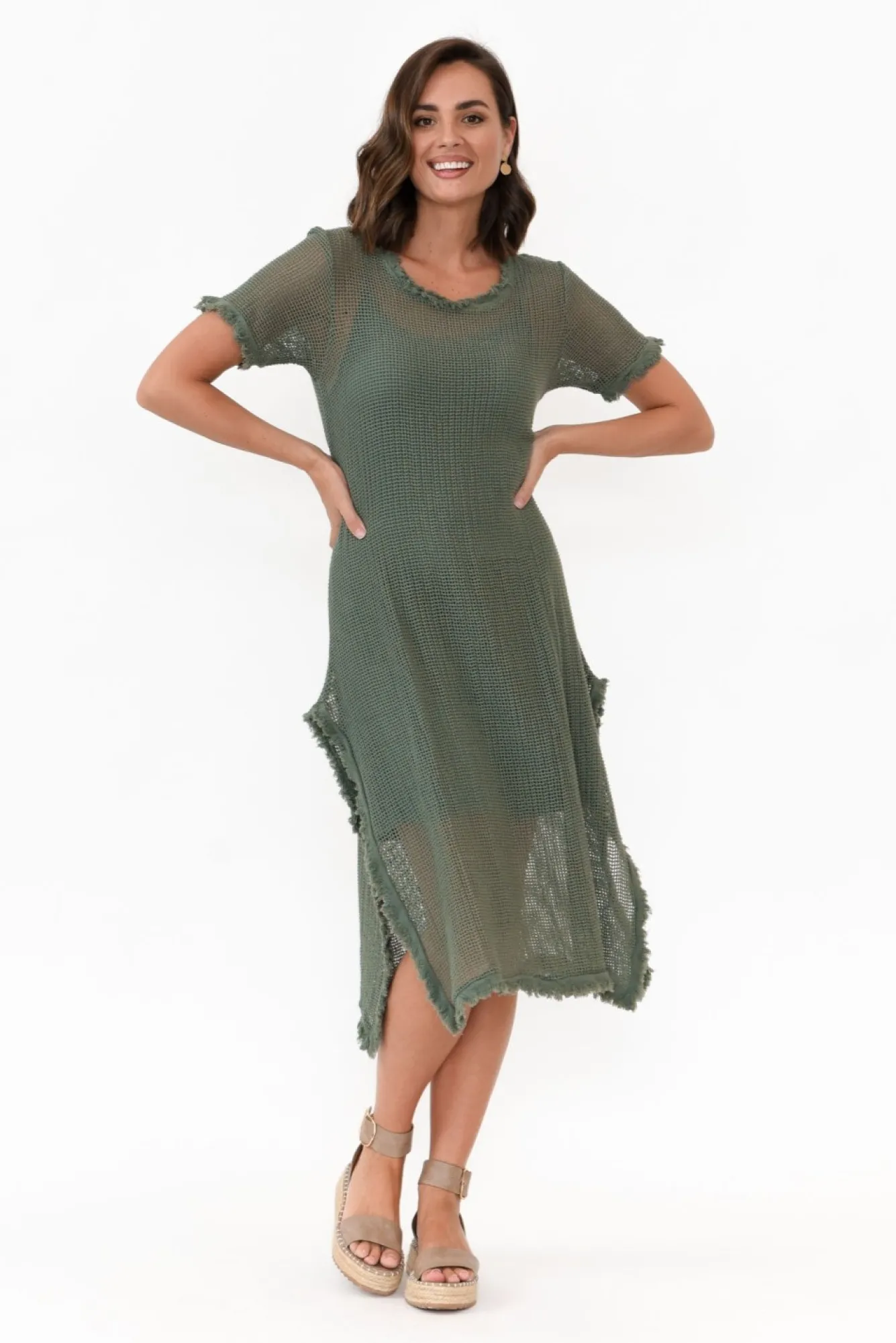 Fit: True To Size. Refer To Size & Fit Tab Below For Specific Size Recommendation NNfabric: Main: 100% Cotton Slip: 100% ViscoseNa Uniquely Stunning Woven Dress That Is Perfect ForNmade In Italy From Midweight, Breathable And Loosely Woven Cotton Nseparate Ultra-Stretchy And Soft Slip Is Included For Additional Coverage Nlovely Round Neckline With Fray Trim NNclassic Half-Length Sleeves NNflattering Straight-Cut Silhouette Feature Side Splits From Knee Length Nstraight Hem With Fray Trim Falls To Midi Length NNNcare: Cool Gentle Machine Wash RecommendedNNcolour: Washed Khaki Shade