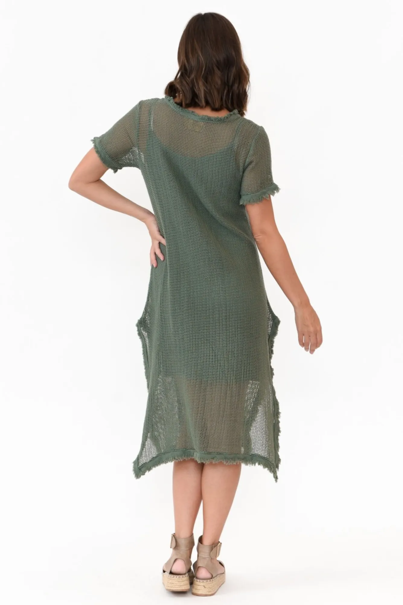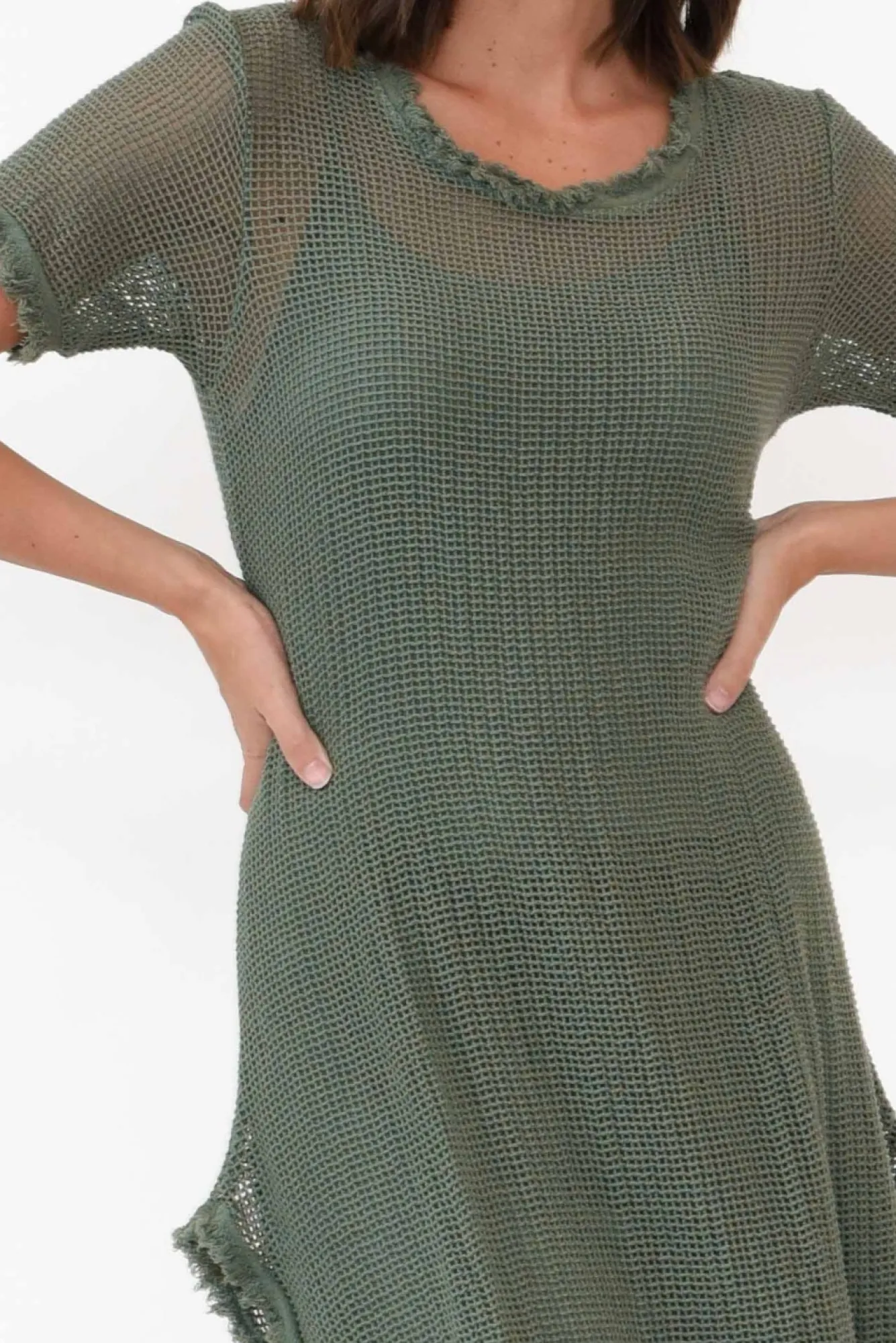 Cotton Dresses<Donna Donna Nessy Khaki Cotton Woven Frayed Dress