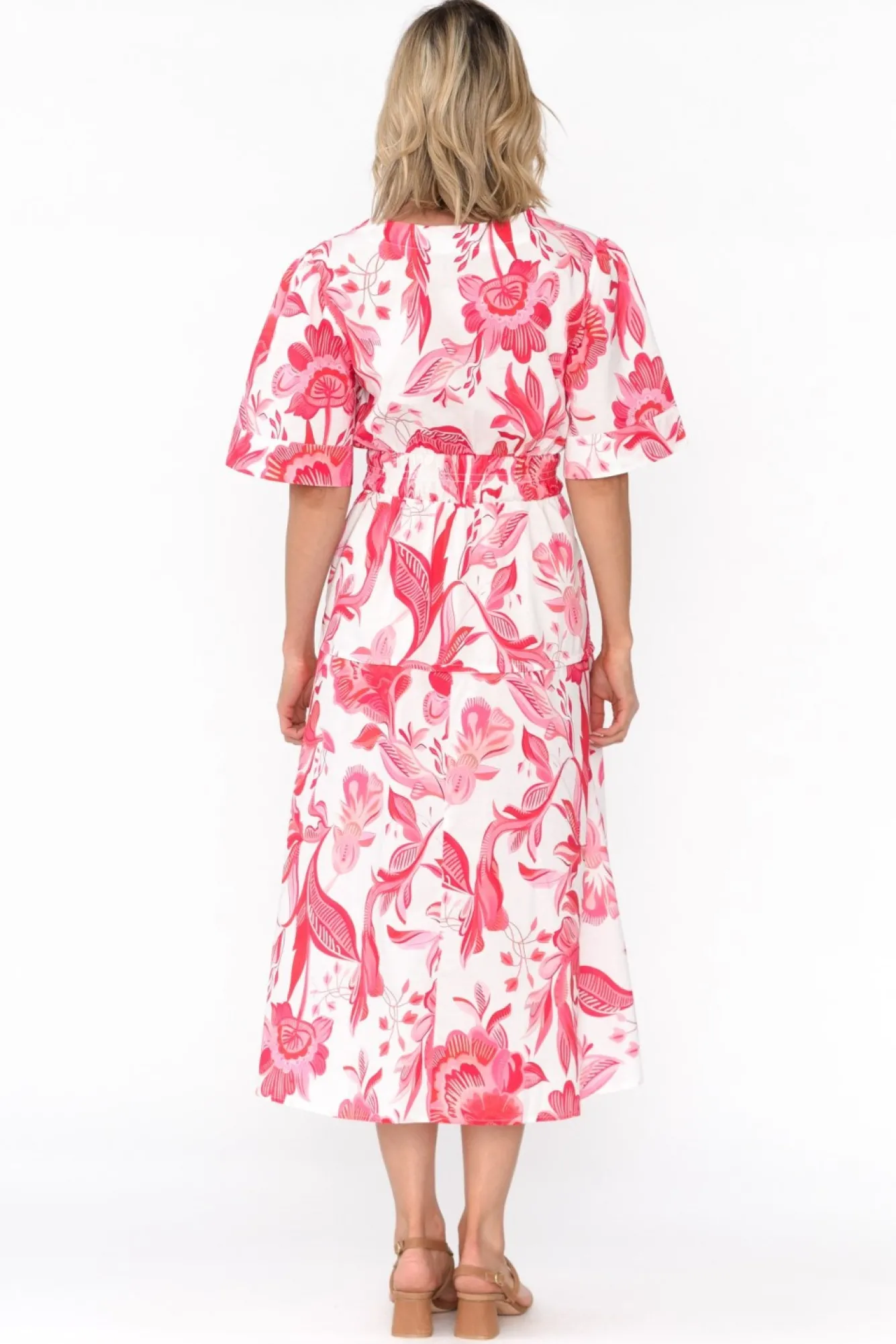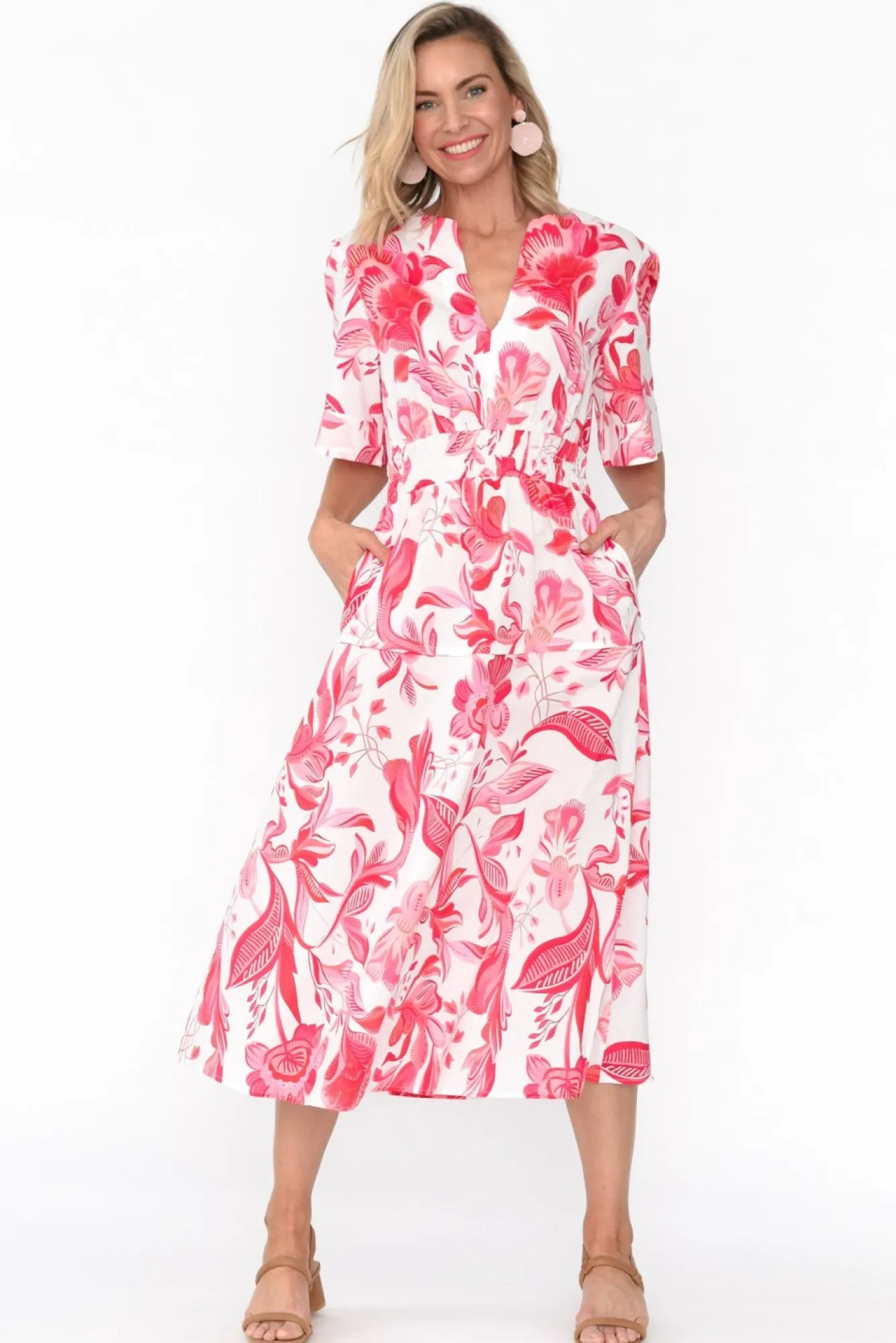Fit: True To Size. Refer To Size & Fit Tab Below For Specific Size RecommendationNNfabric: 100% CottonNcrafted From Crisp Cotton Poplin Offering Wonderful Breathability And A Non-Stretch Hand Feel NNfabric Is Semi Sheer, We Recommend Pairing With Nude Undergarments Ndeep V-Split Neckline NNwide, Straight Half-Length Sleeves NNversatile A-Line Silhouette With A Shirred Elasticated Waistband NNtwo Discreet Hip Pockets Located In Side Seams NNstraight Hemline Falls To A Midi Length NNNcare: Cool Gentle Hand Wash RecommendedNNcolour: Lush Pink Floral Print Over A White Base